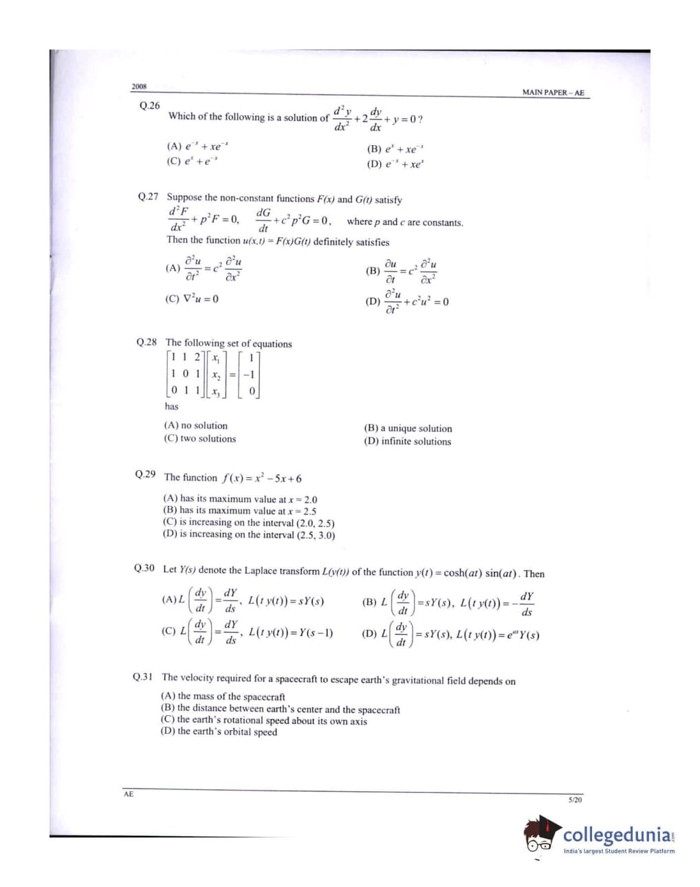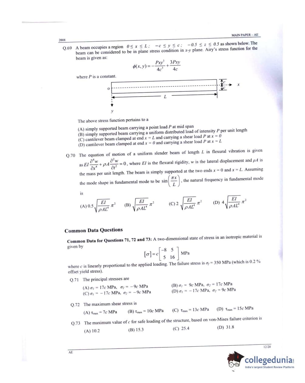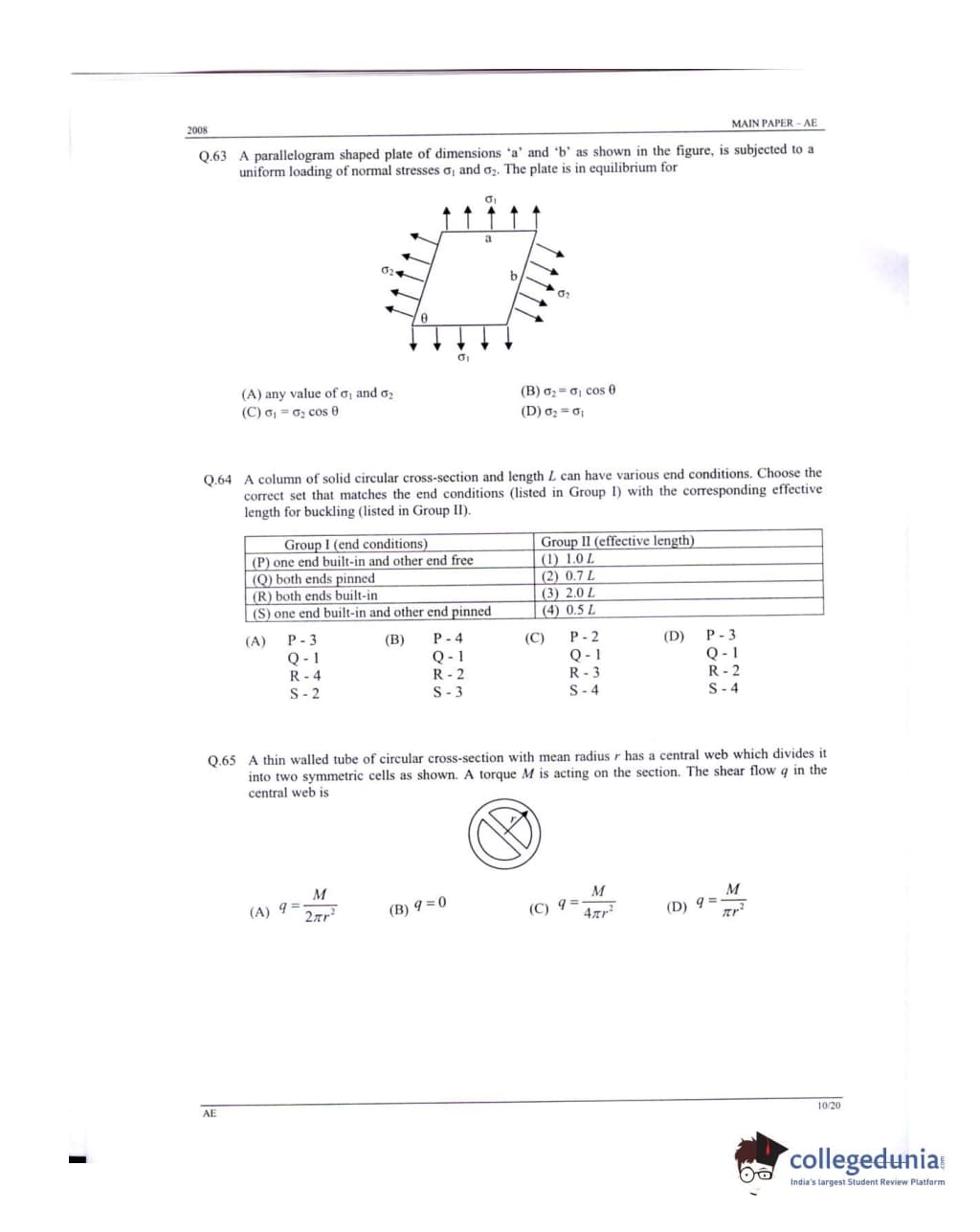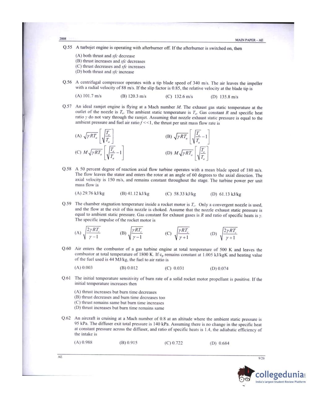 GATE 2008 Aerospace Engineering (AE) Question Paper: Detailed Analysis
