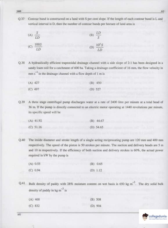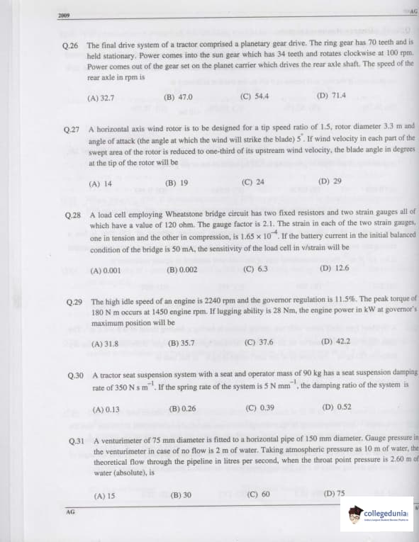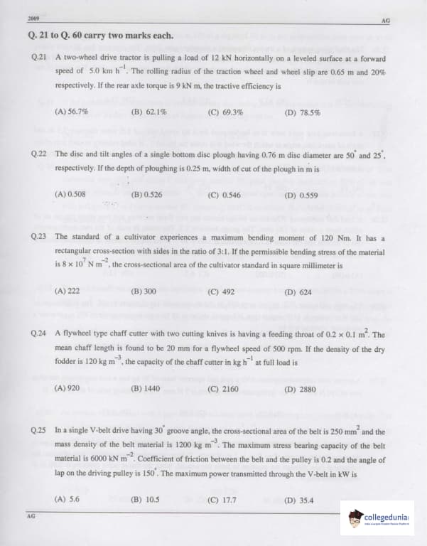 GATE 2009 Agricultural Engineering (AG) Paper Analysis