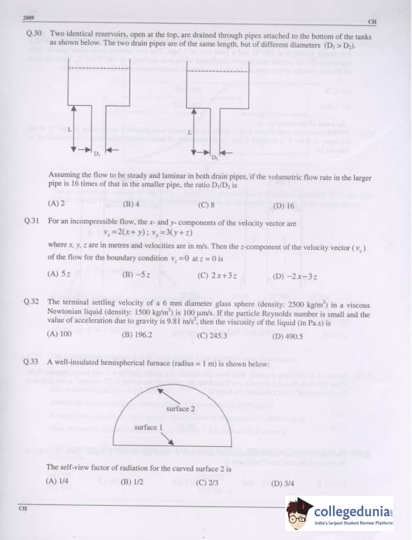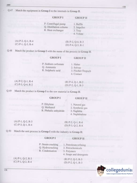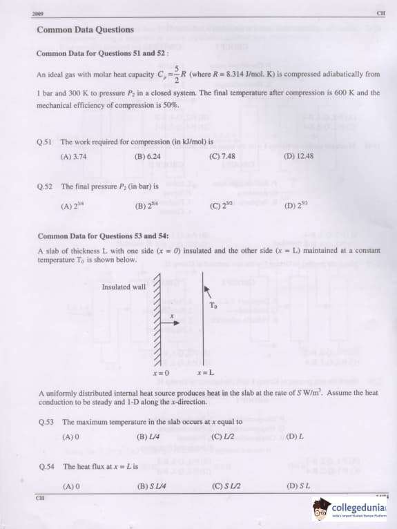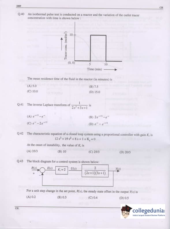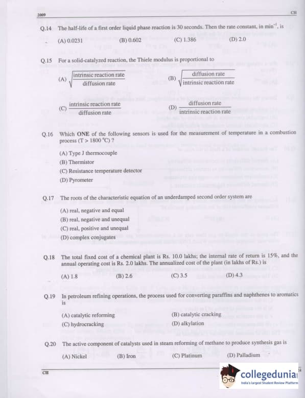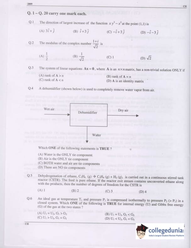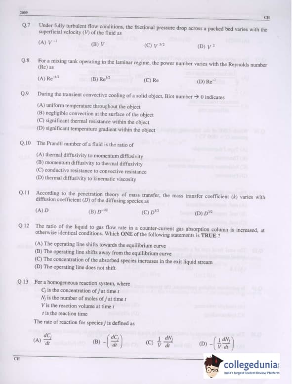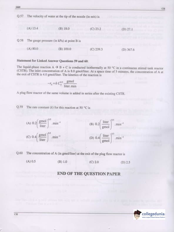 GATE 2009 Chemical Engineering (CH) Paper Analysis