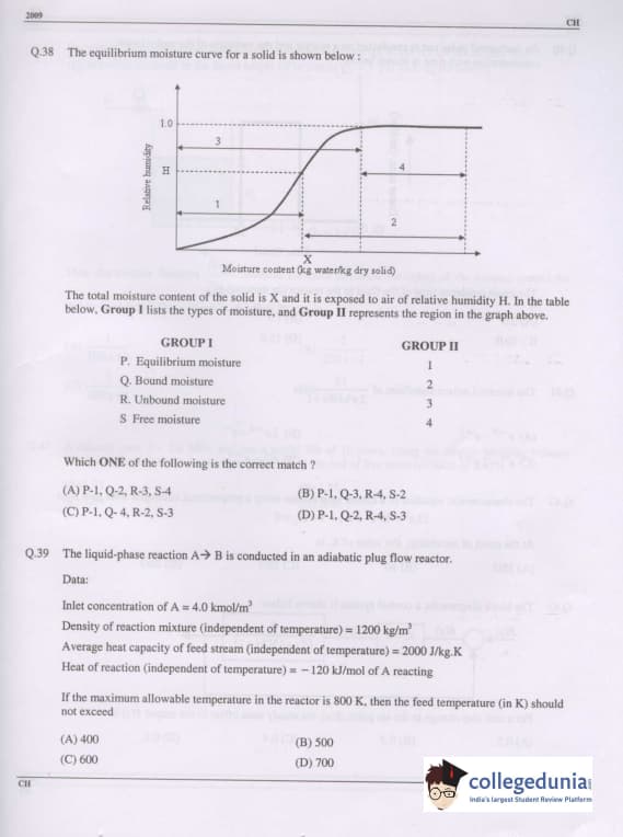 GATE 2009 Chemical Engineering (CH) Question Paper with Answer Key Pdfs Offline (February 8 - Forenoon Session)