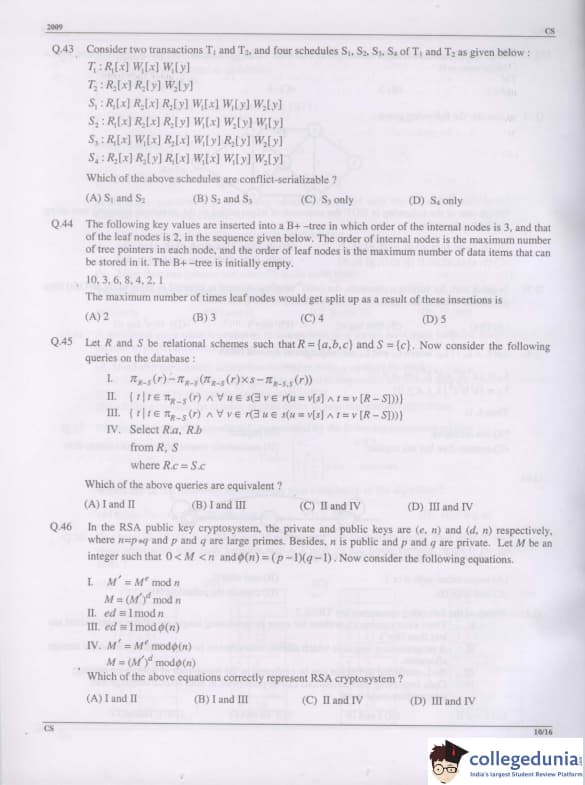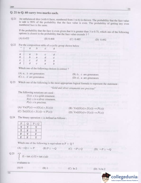 GATE 2009 Computer Science and Information Technology (CS) Question Paper with Answer Key Pdfs Offline (February 8- Forenoon Session)