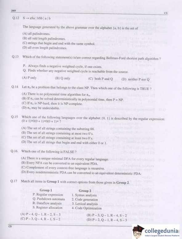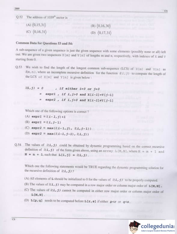 GATE 2009 CS Paper Analysis