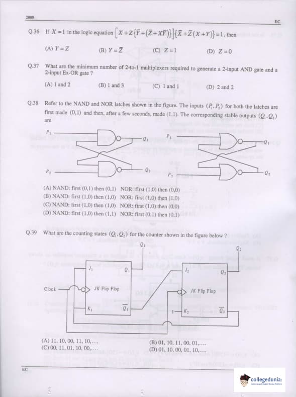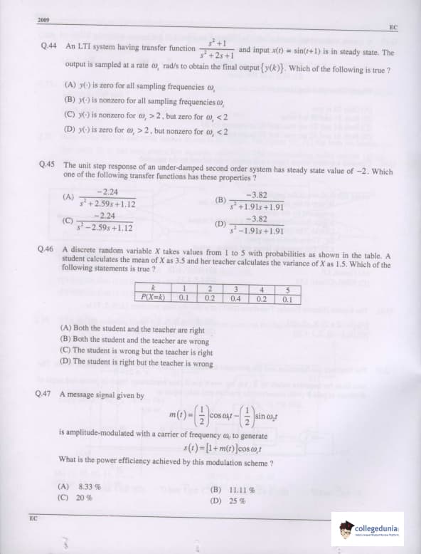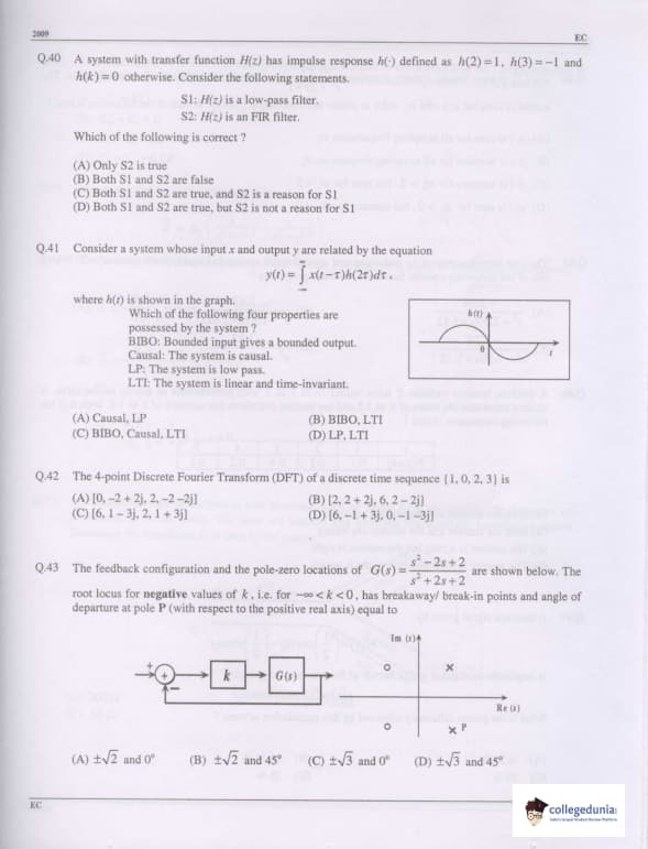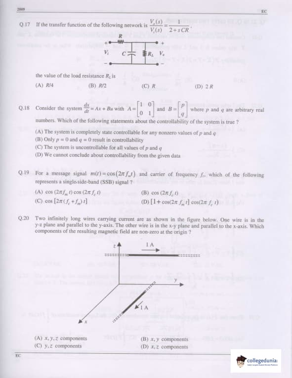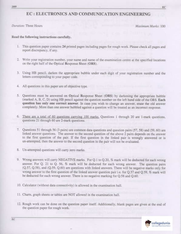 GATE 2009 Electronics and Communication Engineering (EC) Question Paper with Answer Key PDFs are available for download. GATE 2009 Electronics and Communication Engineering (EC) was conducted by the Indian Institute of Technology, Roorkee on February 8, 2009 in the Forenoon session. The paper consisted of 60 questions and the total marks for the exam was 100. The duration of GATE 2009 EC was 3 hours.