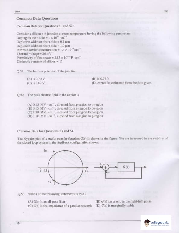 GATE 2009 Electronics and Communication Engineering (EC) Paper Analysis
