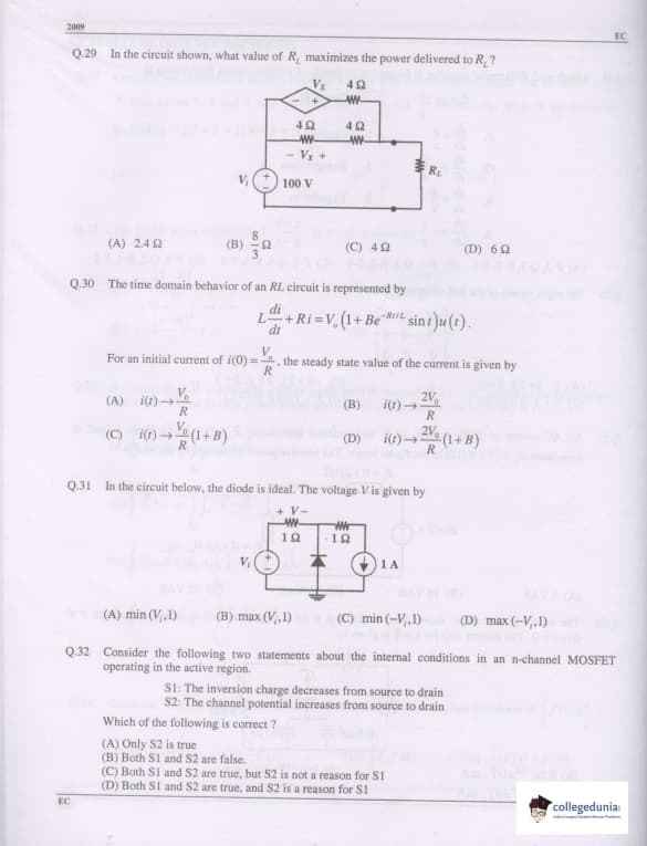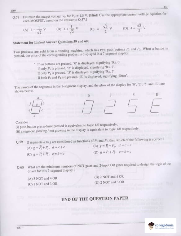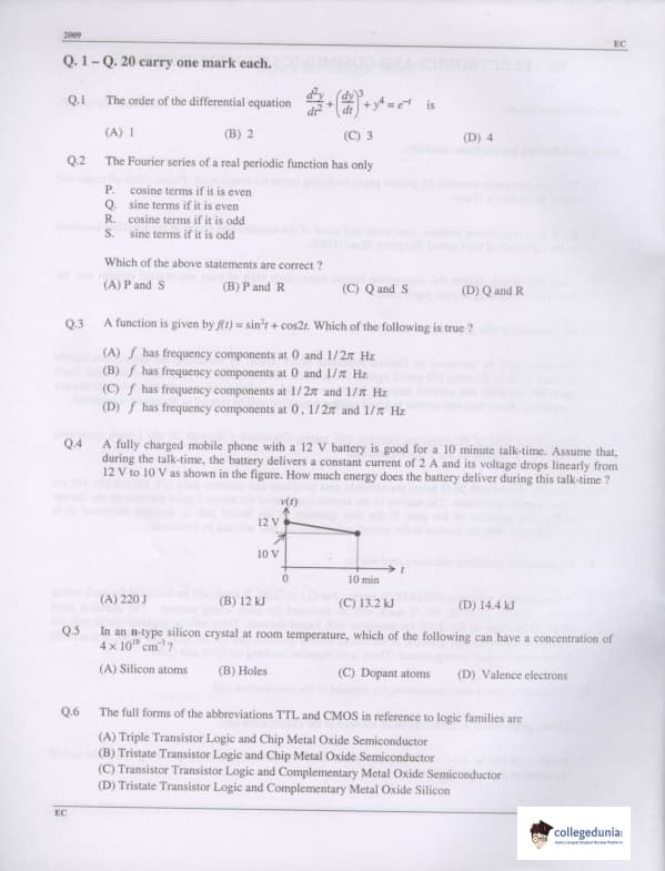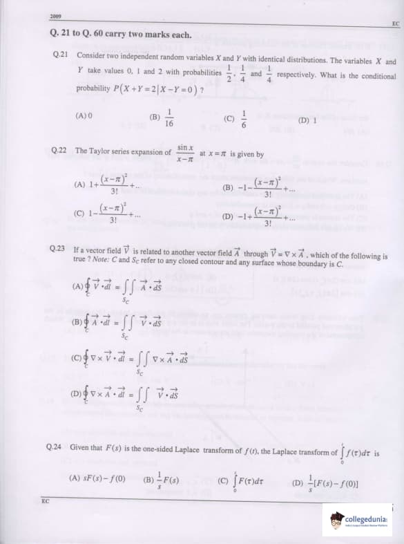 GATE 2009 Electronics and Communication Engineering (EC) Question Paper with Answer Key Pdfs Offline (February 8- Forenoon Session)