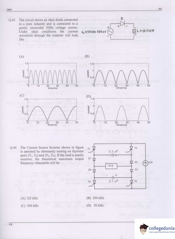 GATE 2009 Electrical Engineering (EE) Question Paper with Answer Key PDFs are available for download. GATE 2009 Electrical Engineering (EE) was conducted by the Indian Institute of Technology, Roorkee on February 8, 2009 in the Forenoon session. The paper included 60 objective-type questions, and the total duration of the exam was 3 hours long.