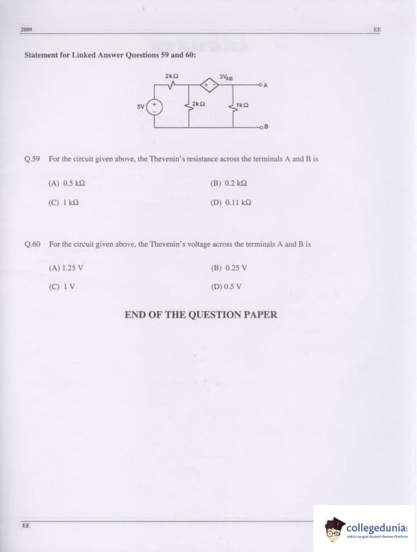 GATE 2009 Electrical Engineering (EE) Paper Analysis