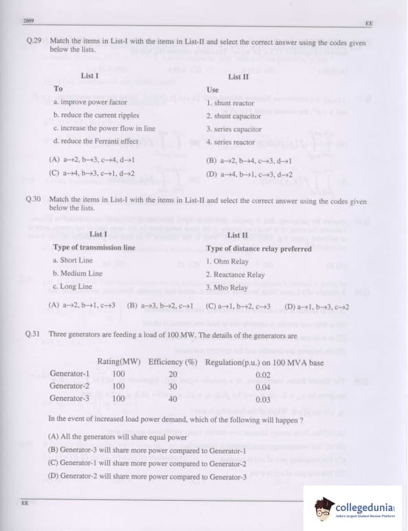 | GATE 2009 Electrical Engineering (EE) Question Paper | GATE 2009 Electrical Engineering (EE) Answer Key |