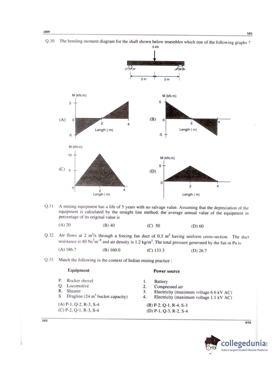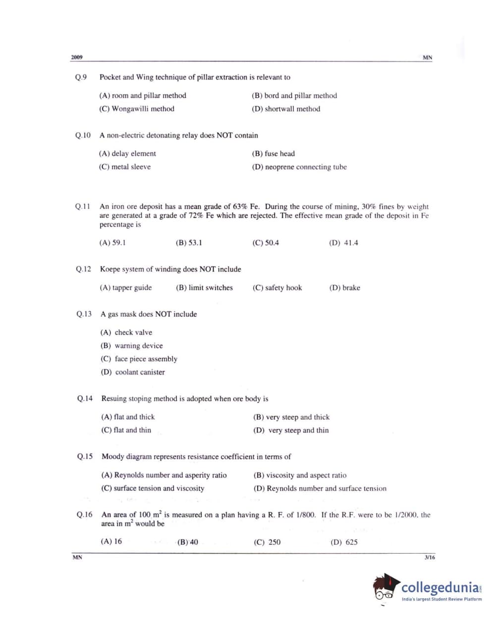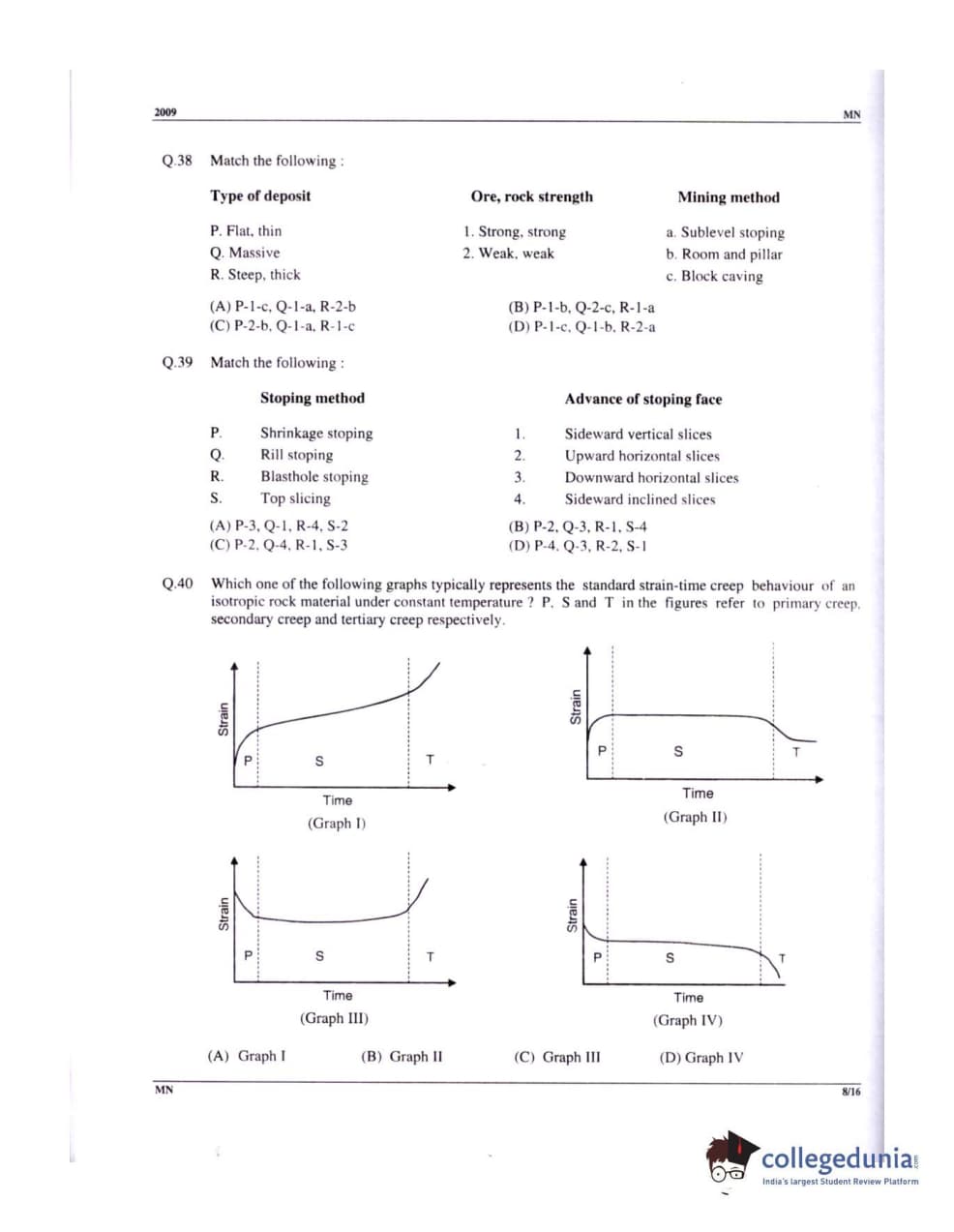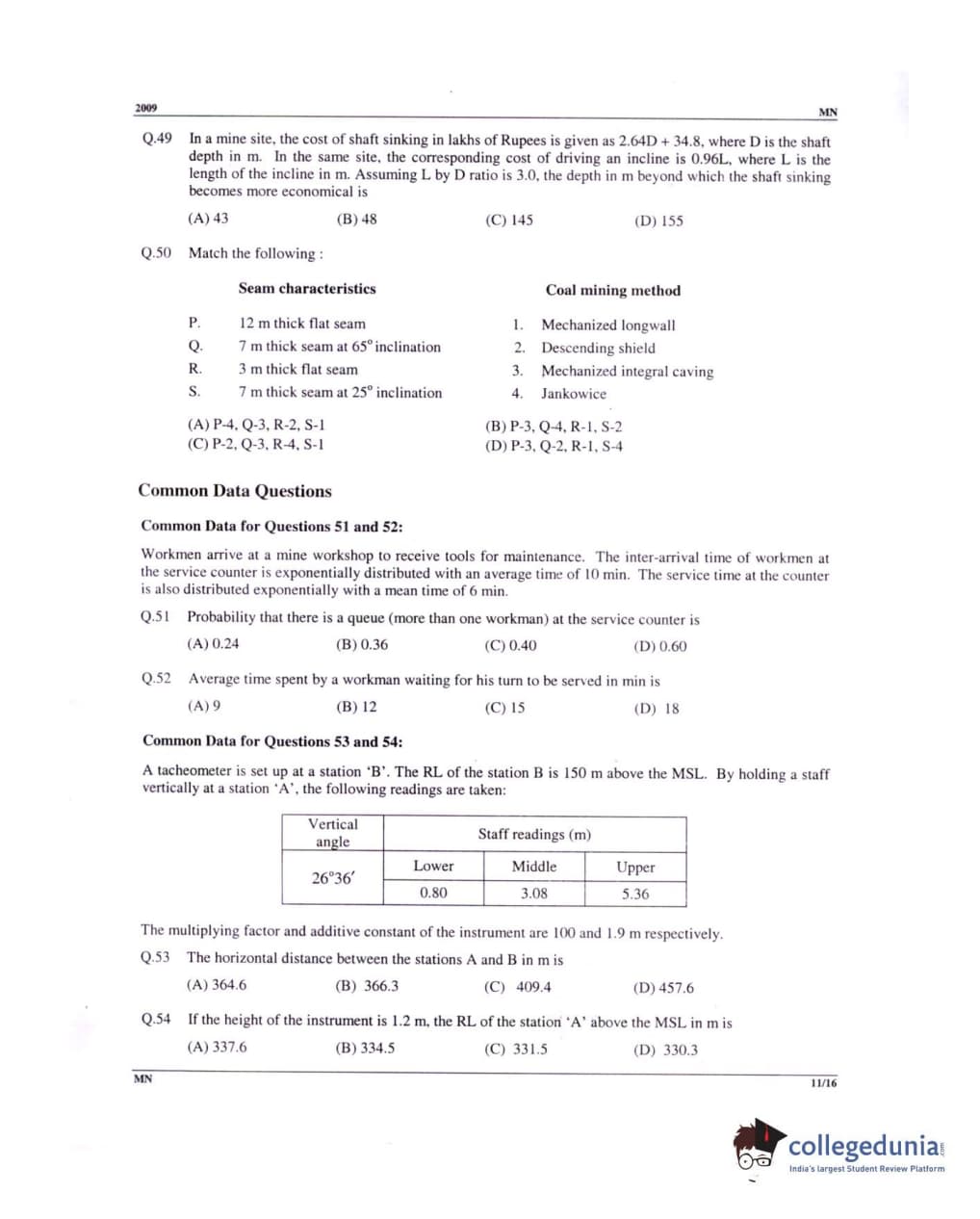 GATE 2009 Mining Engineering (MN) Question Paper with Answer Key PDFs -Forenoon Session