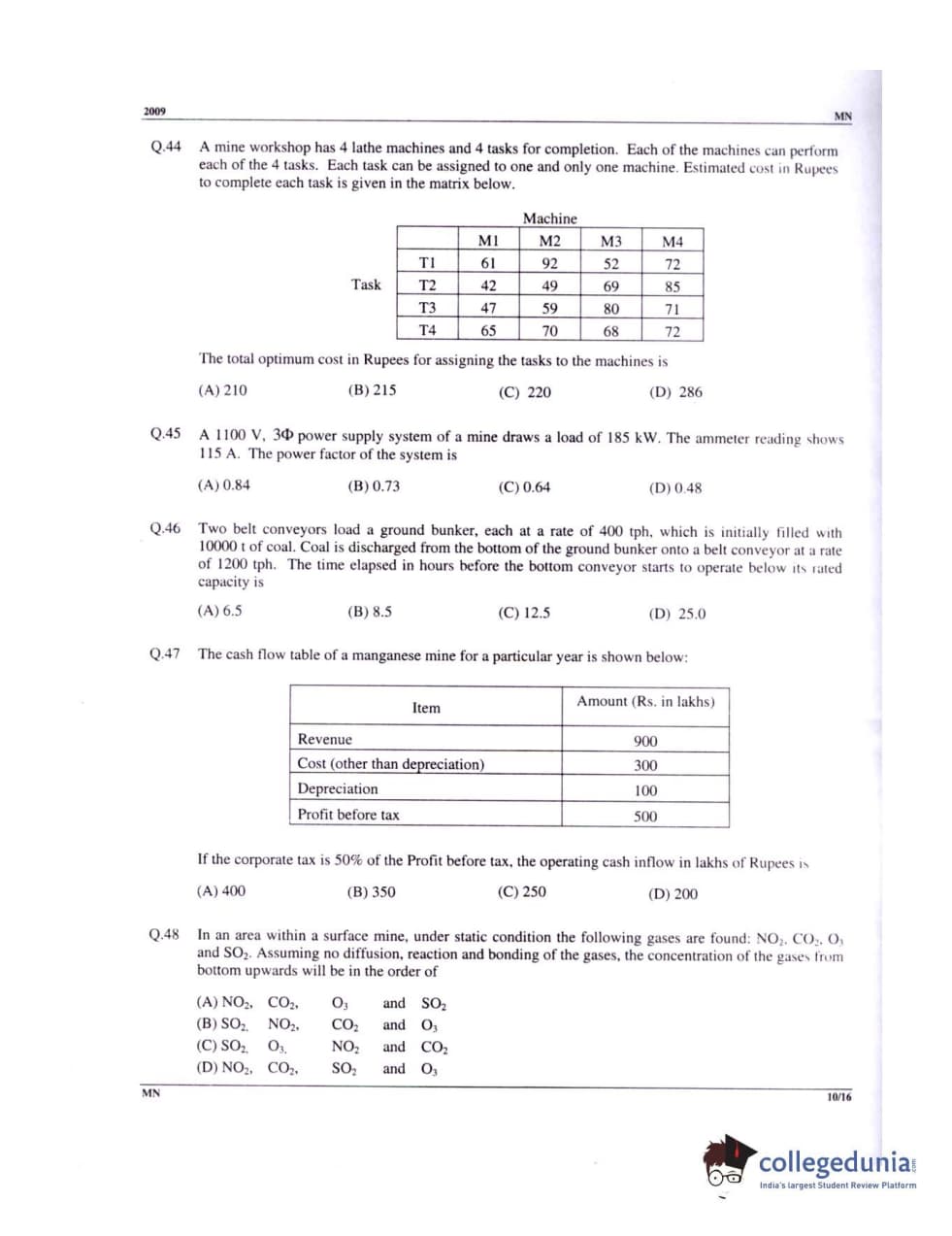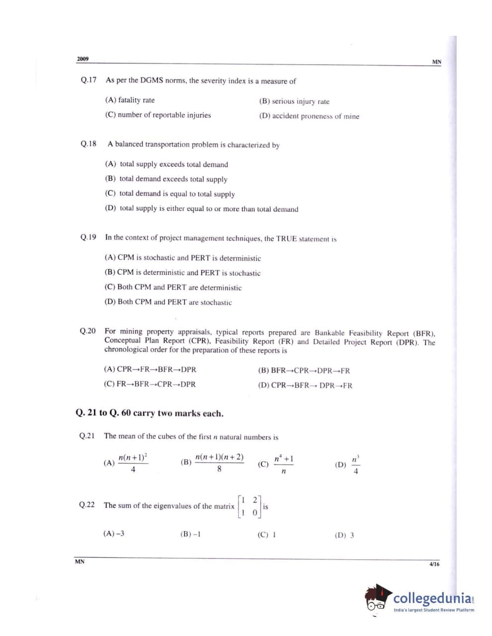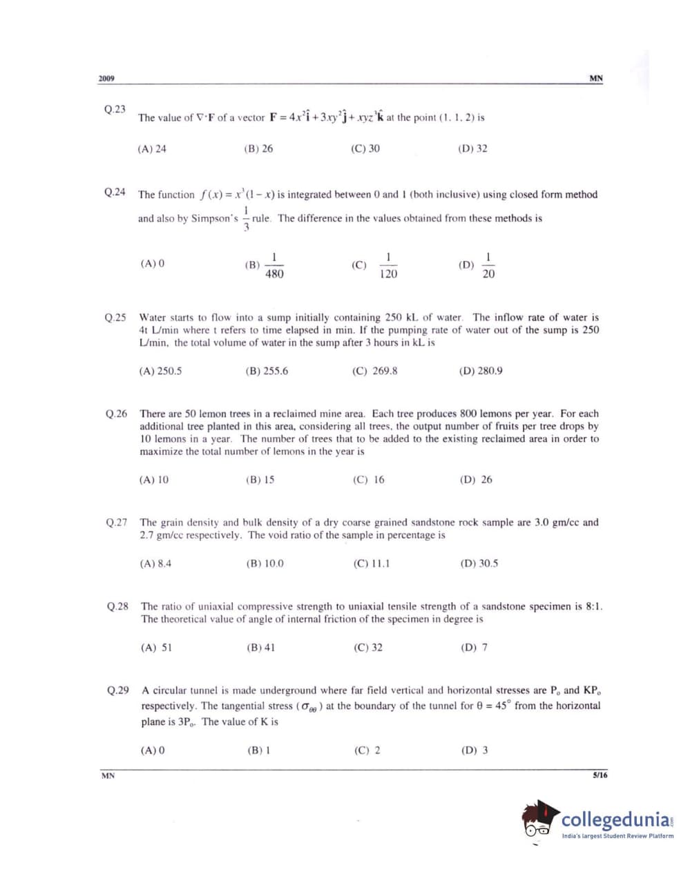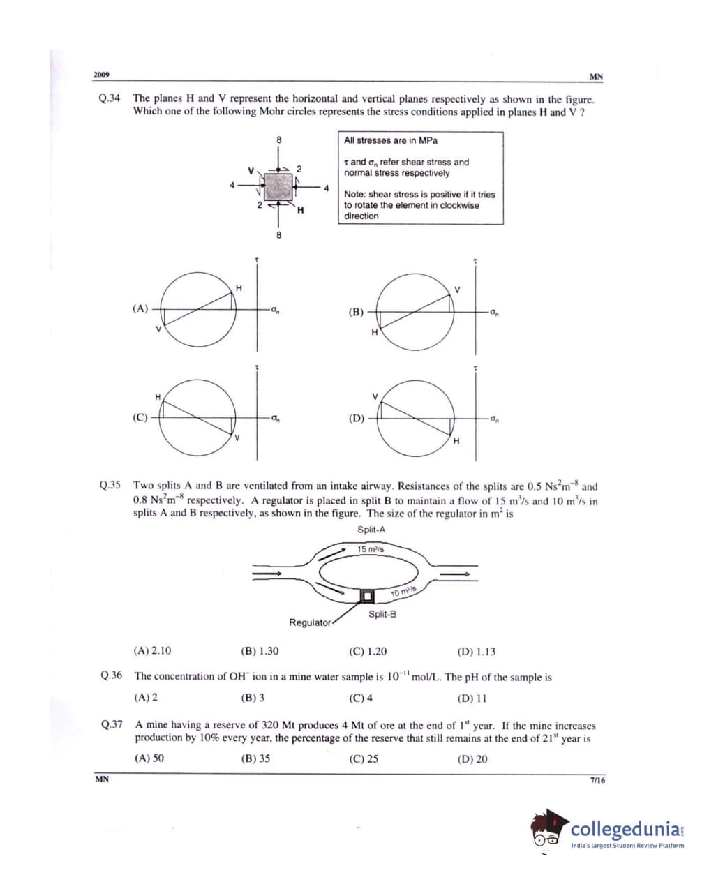 GATE 2009 Mining Engineering (MN) Question Paper with Answer Key PDFs -Forenoon Session