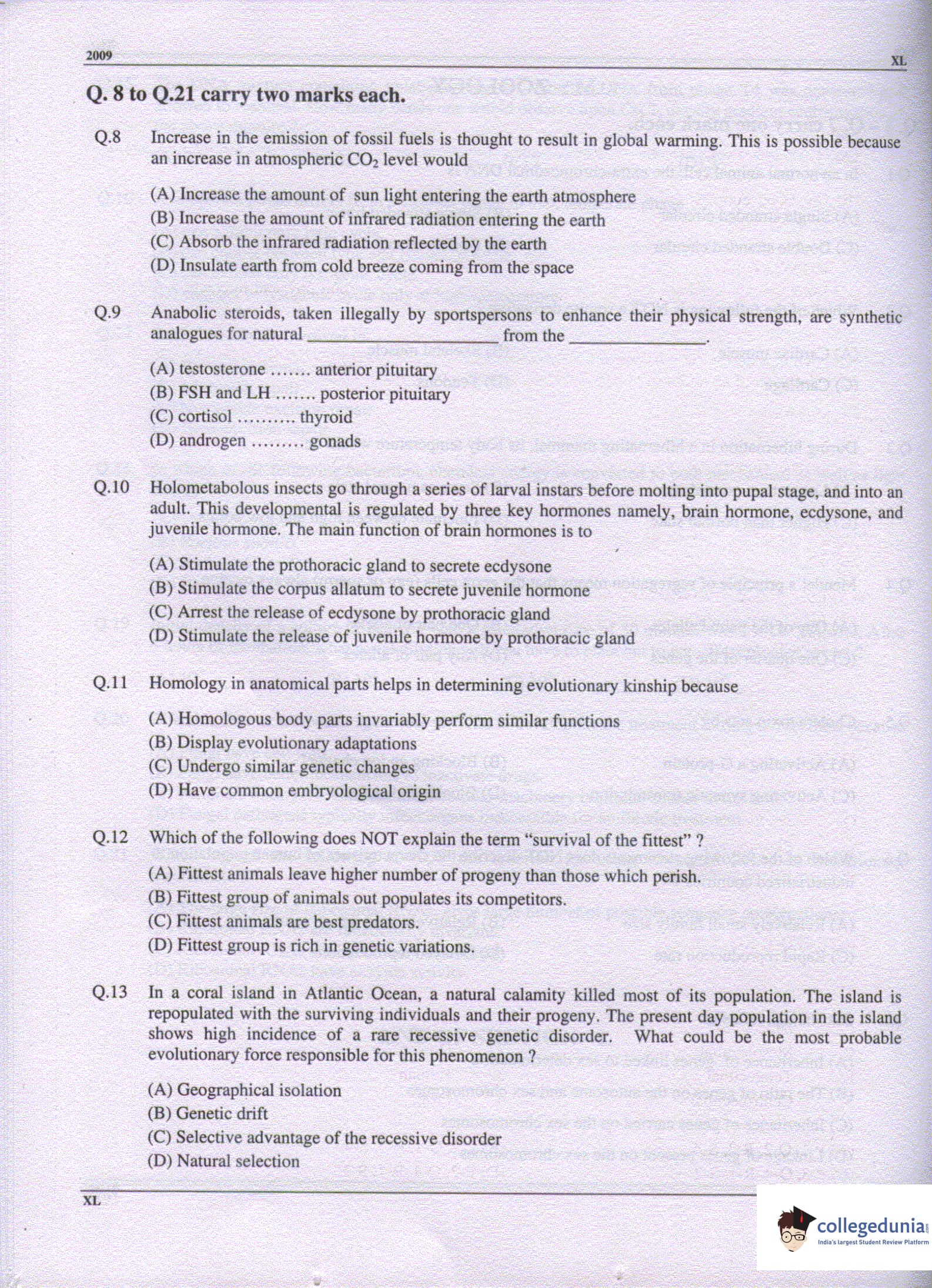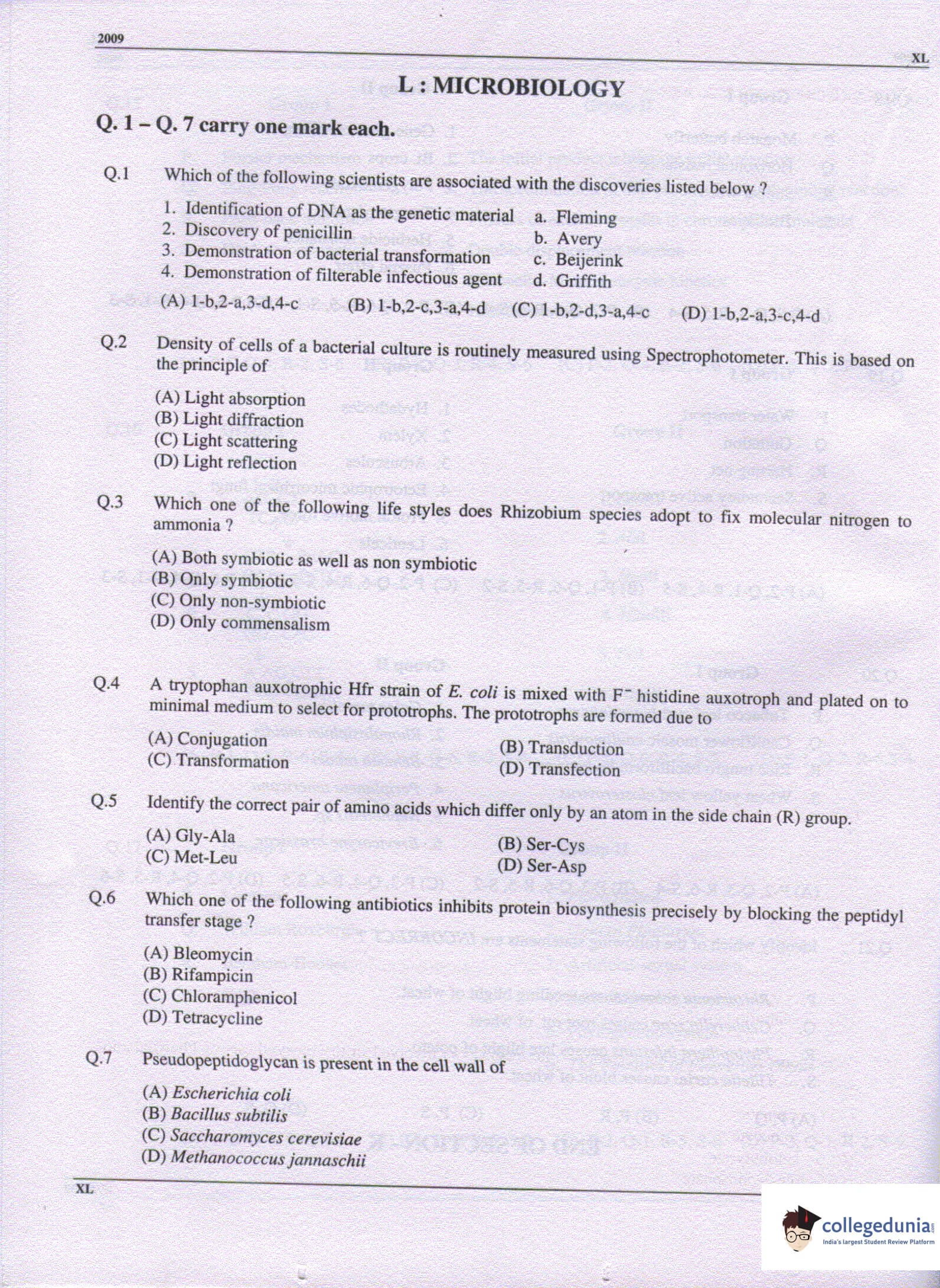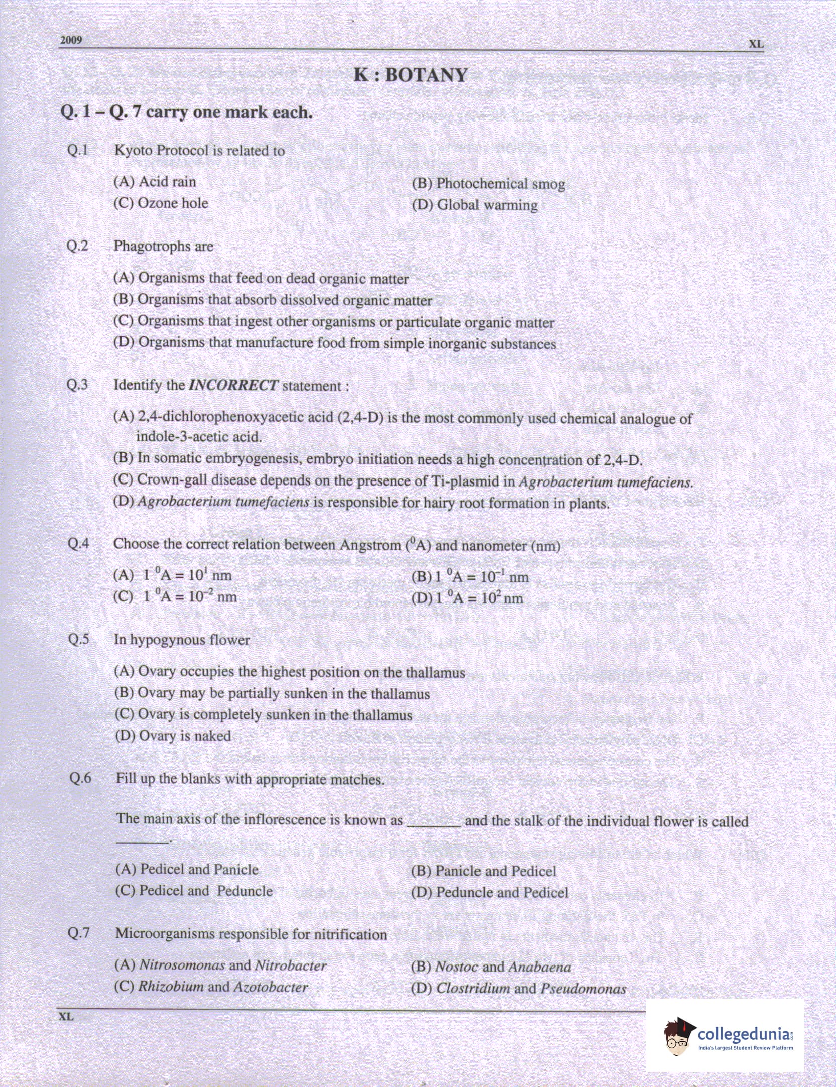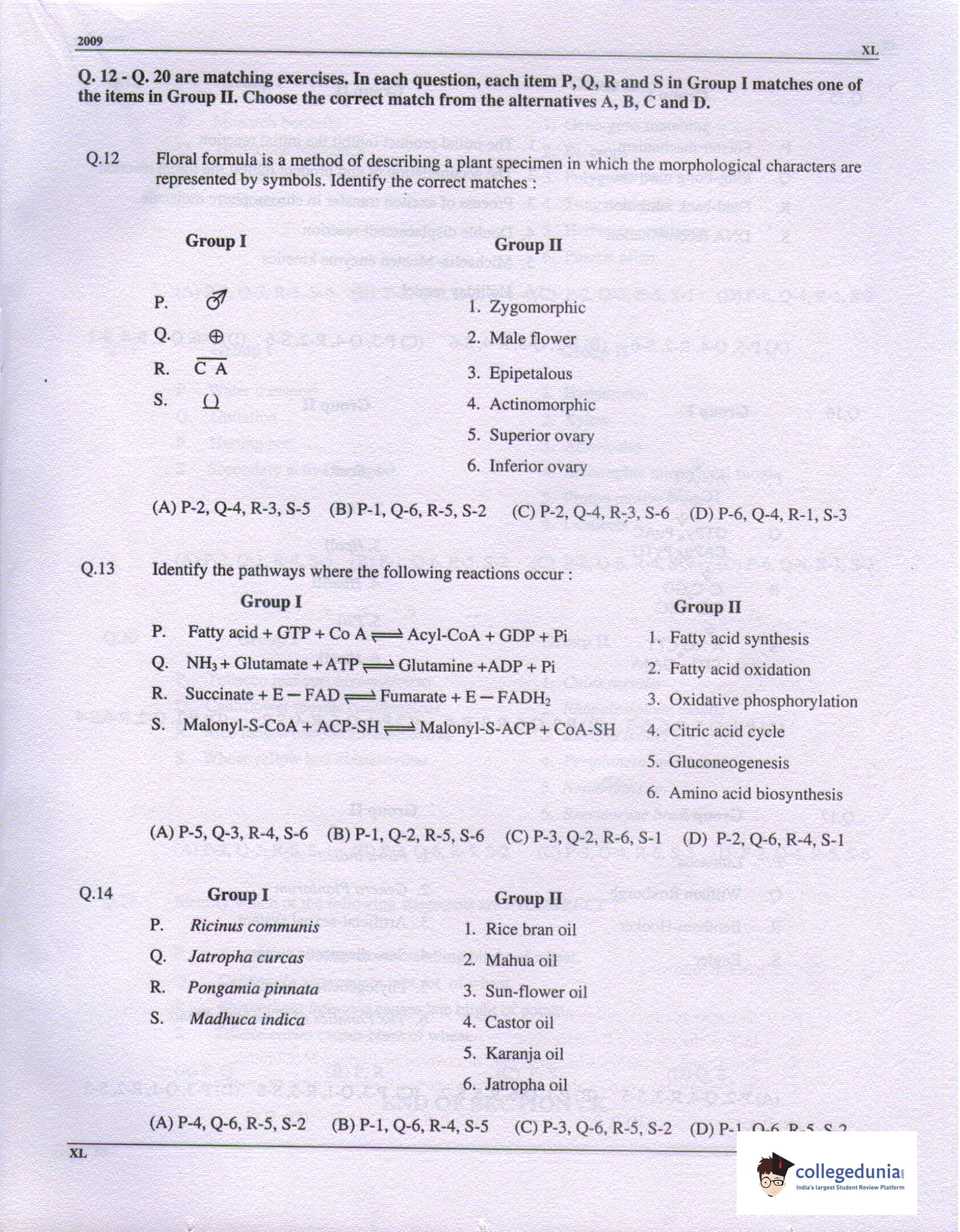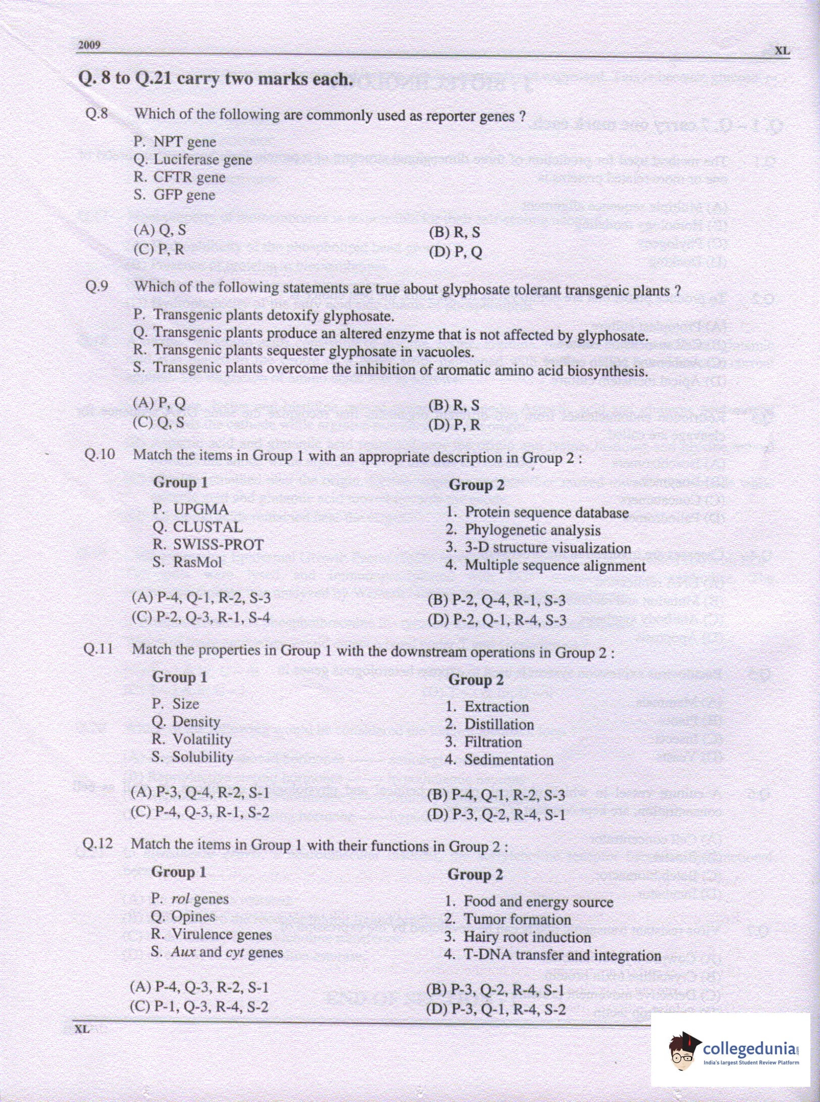 | GATE 2009 XL Question paper | GATE 2009 XL Answer Key |