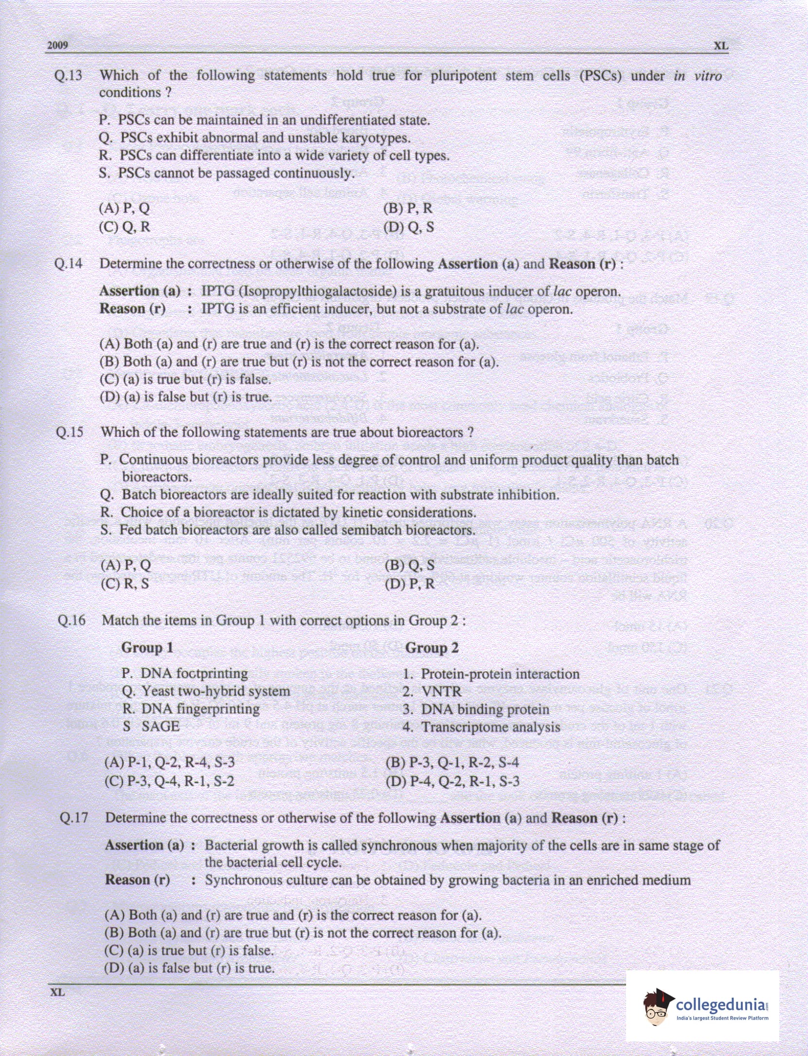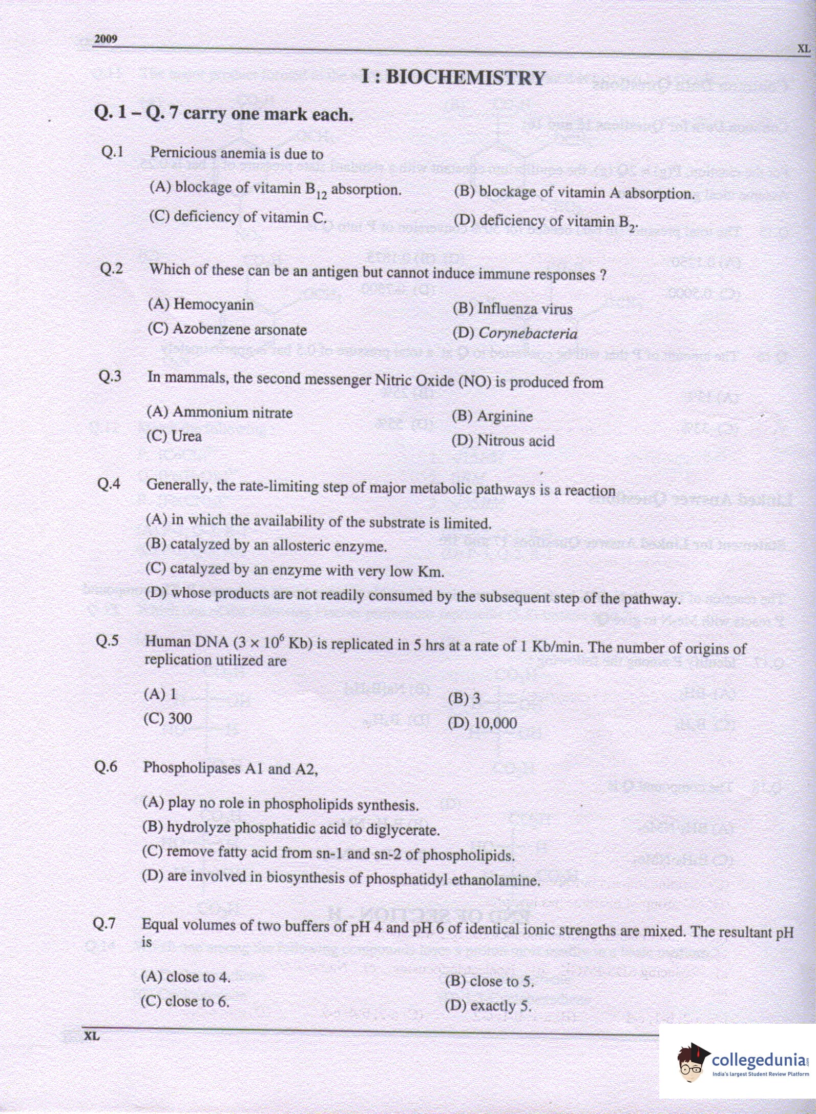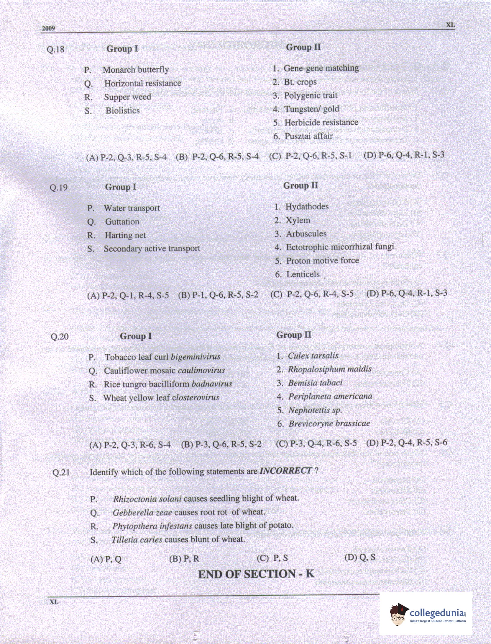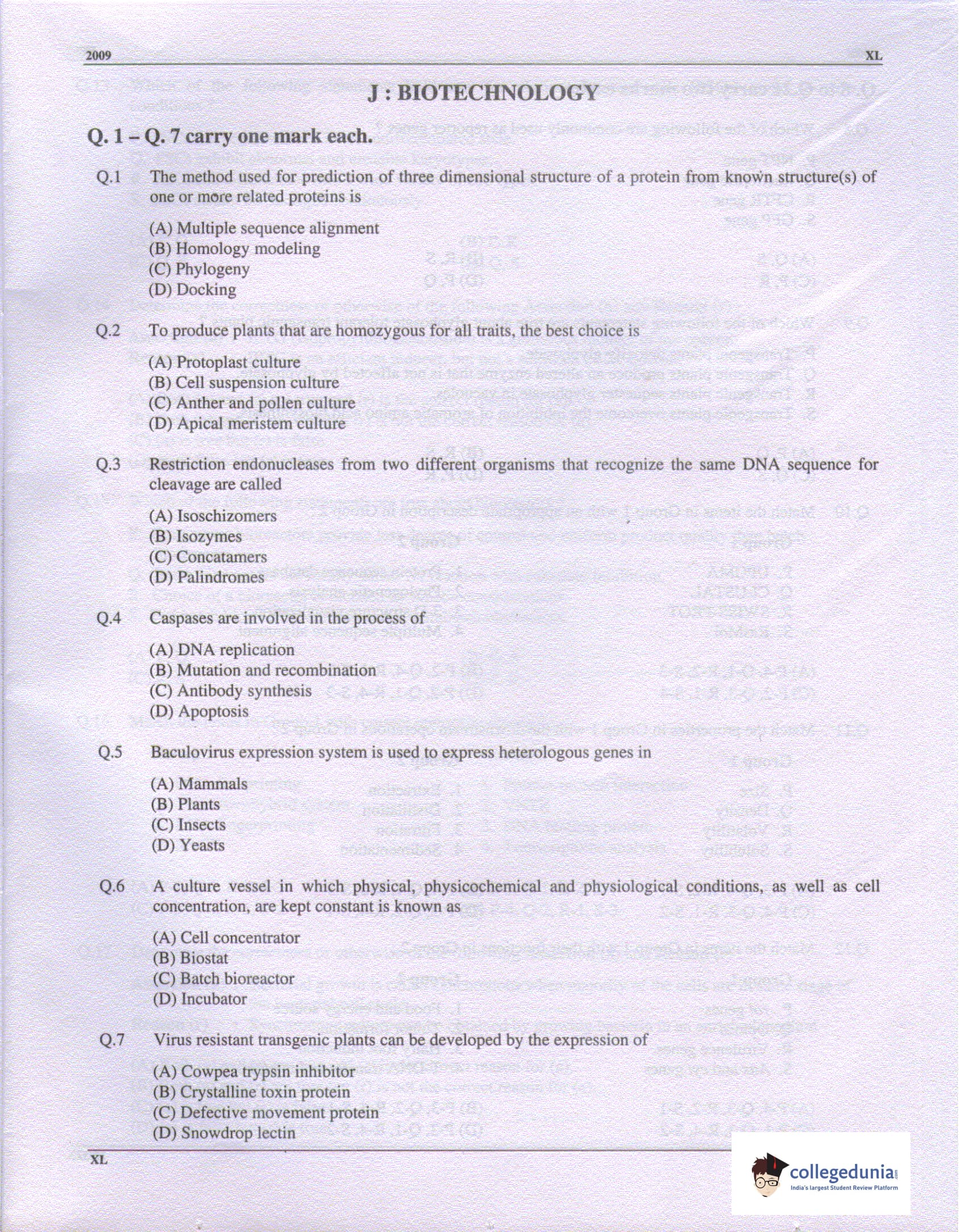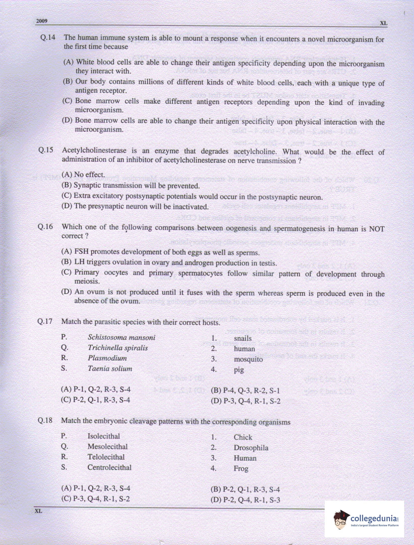 | GATE 2009 XL Question paper | GATE 2009 XL Answer Key |