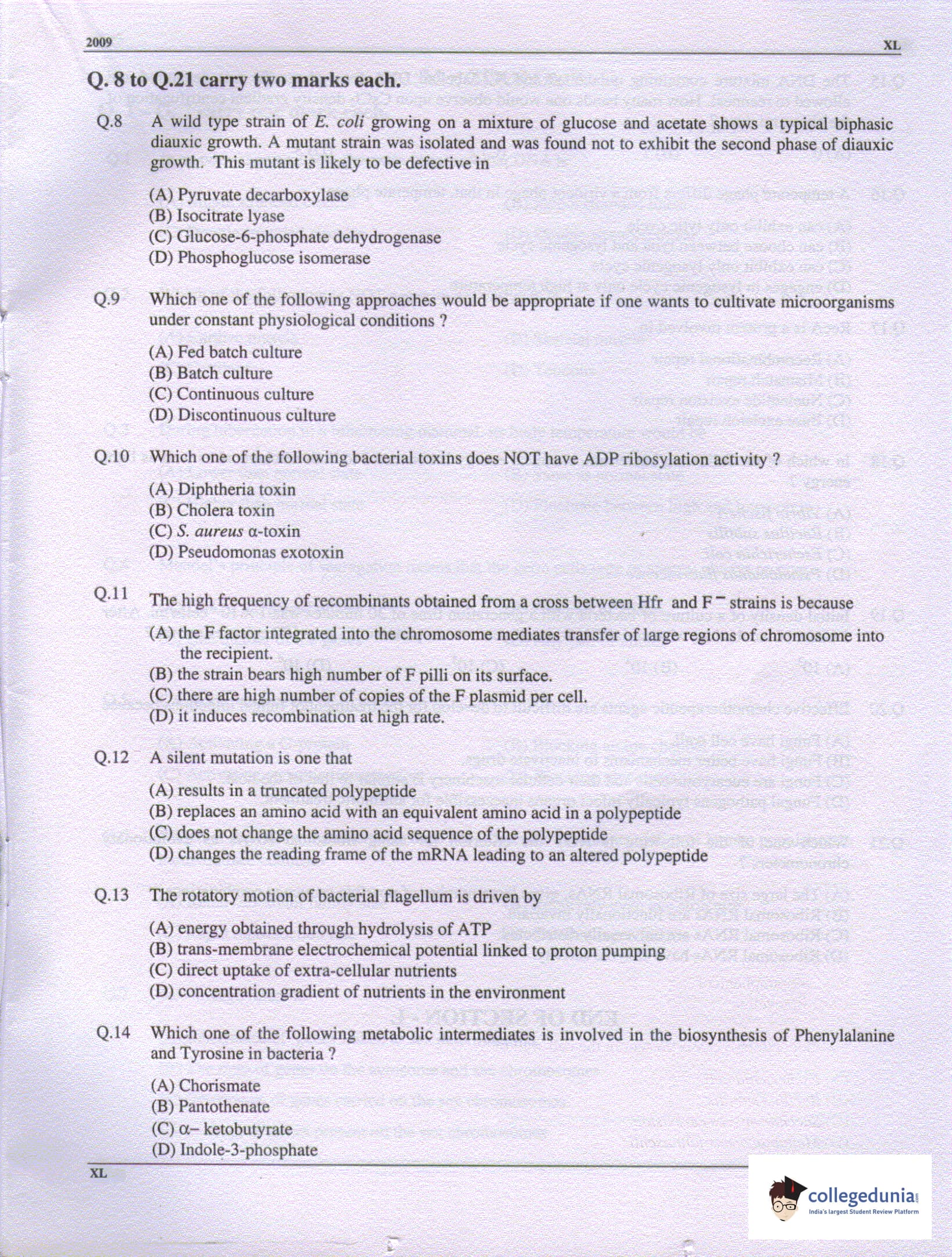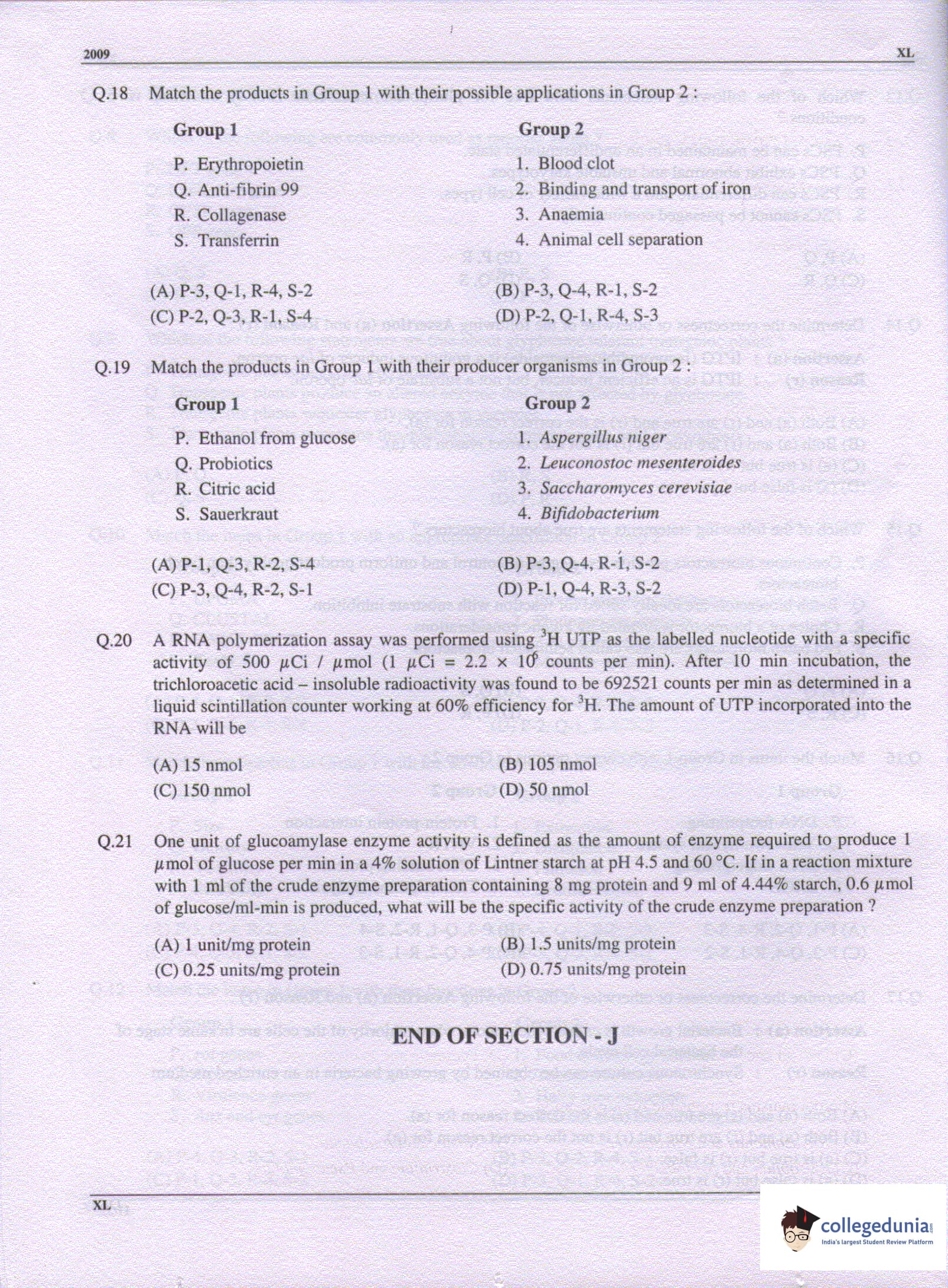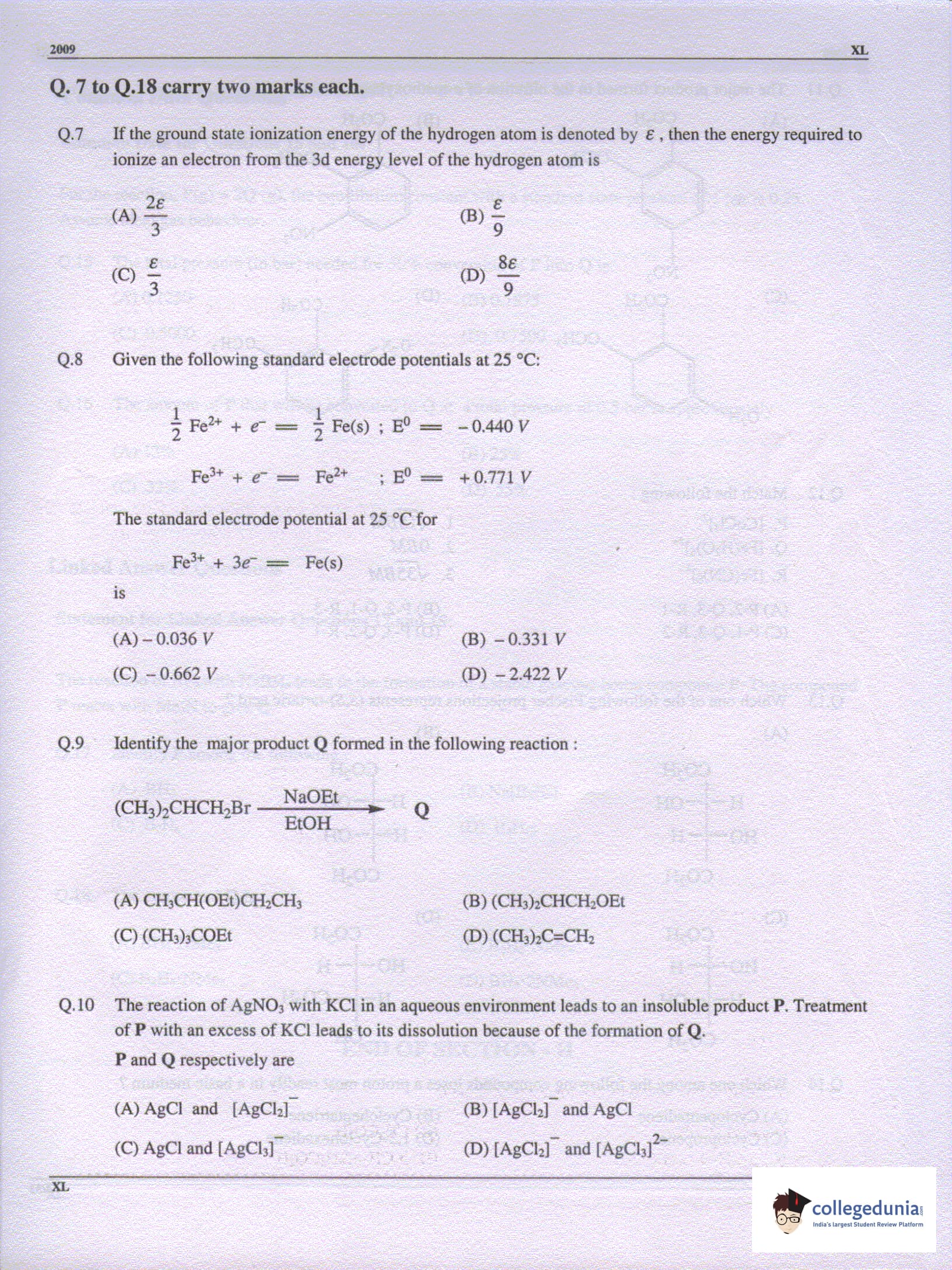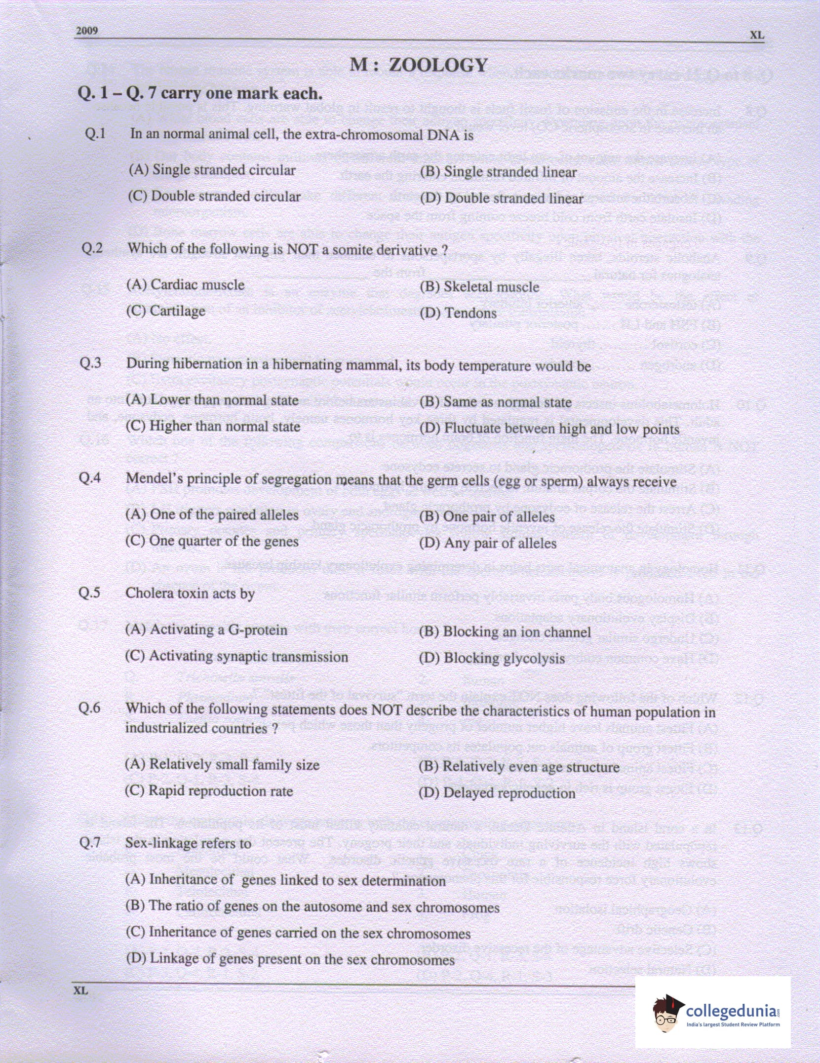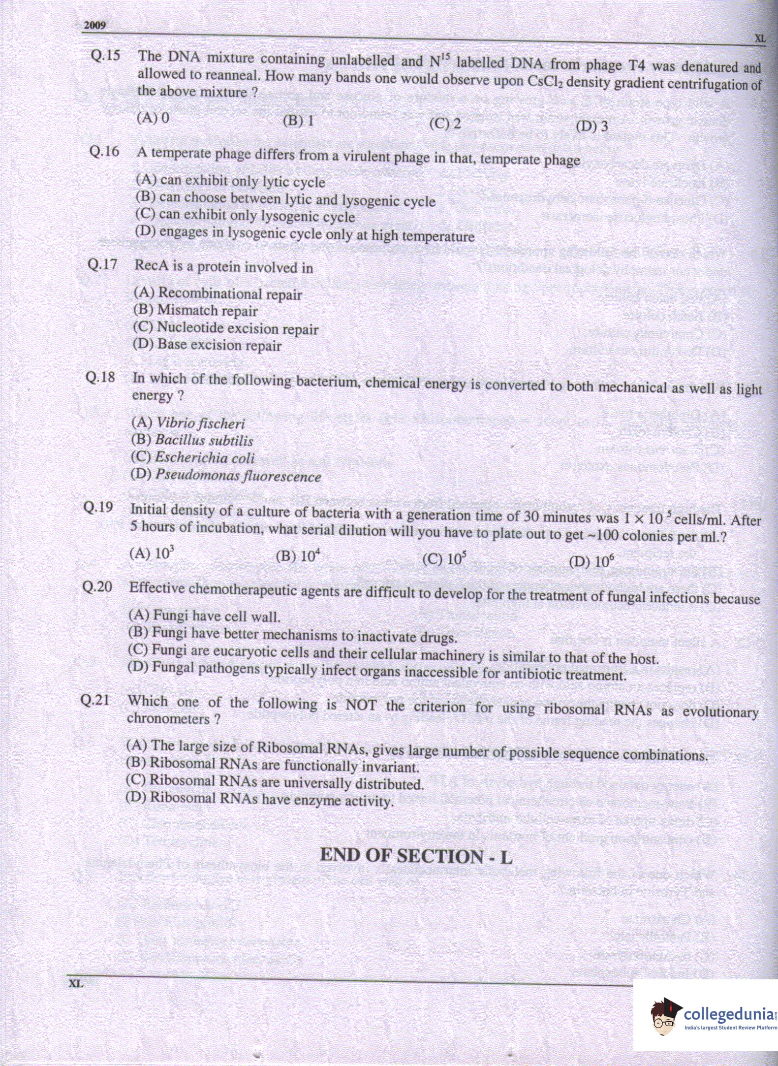 | GATE 2009 XL Question paper | GATE 2009 XL Answer Key |