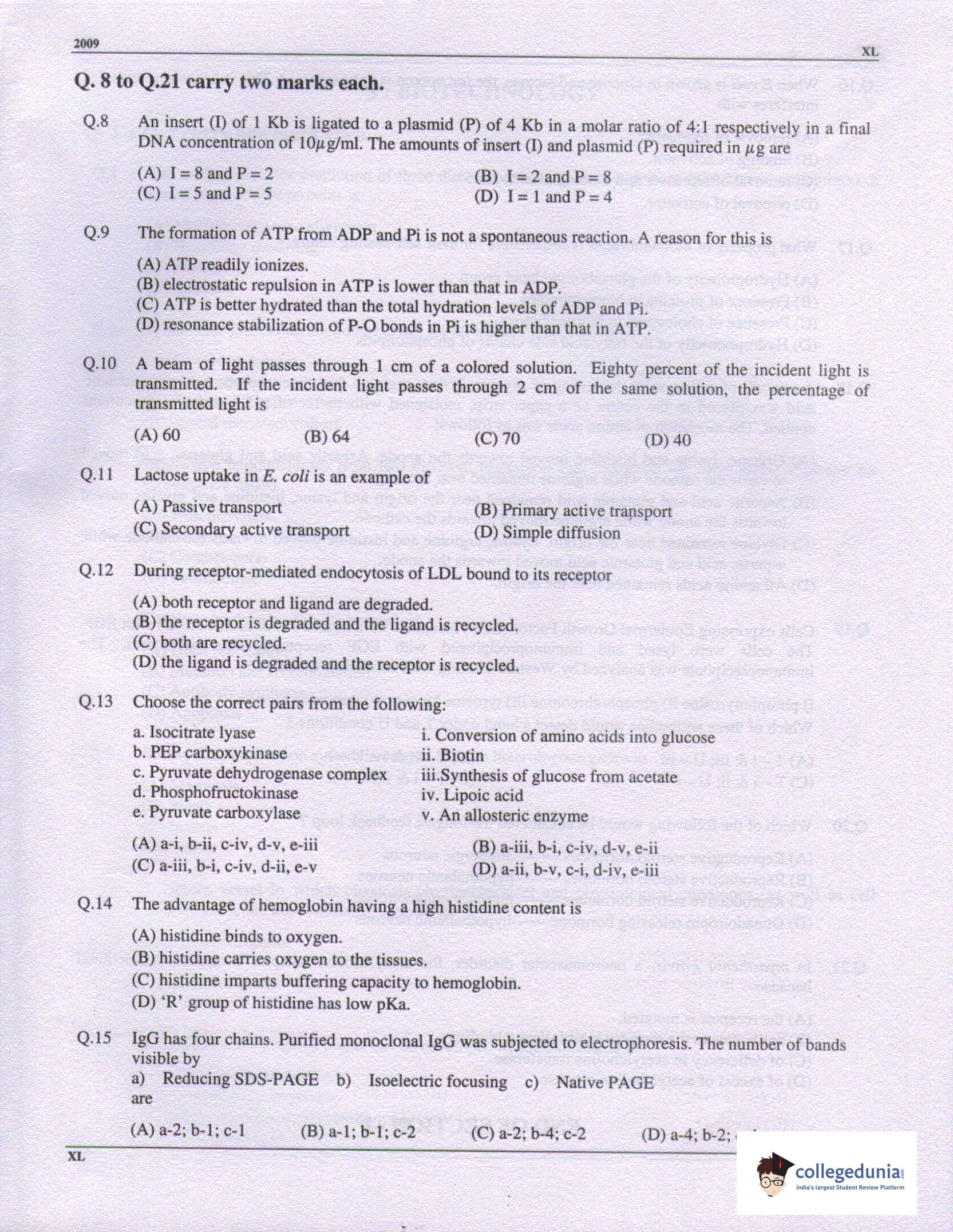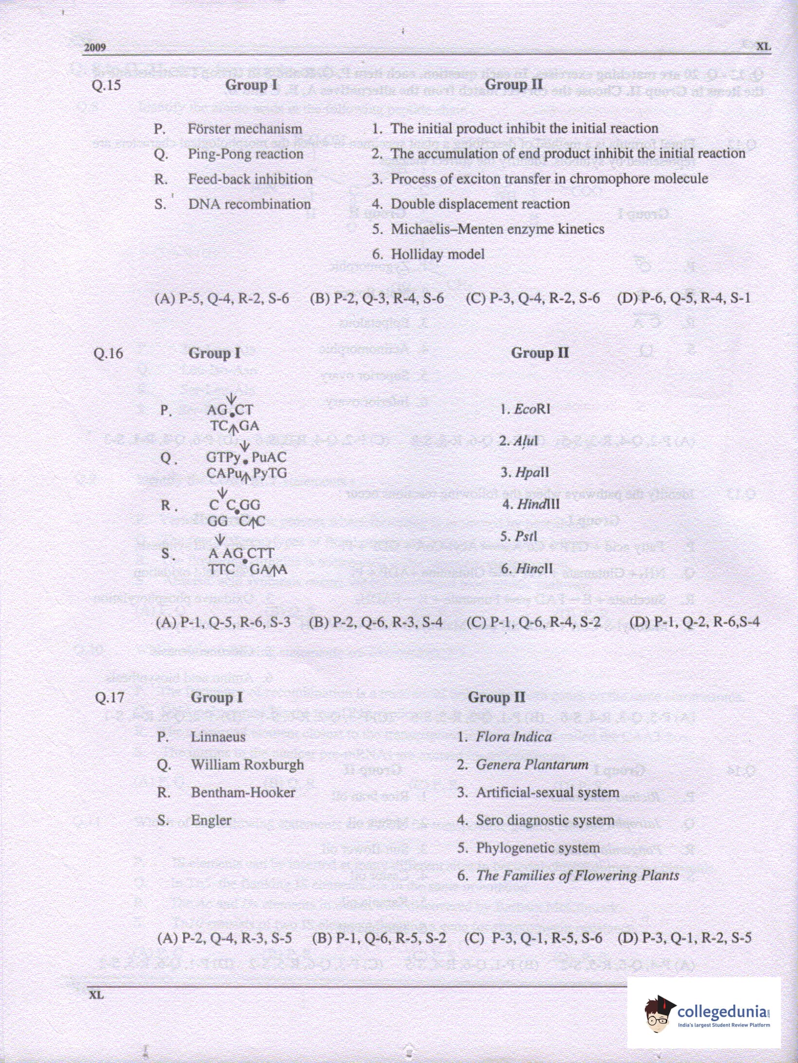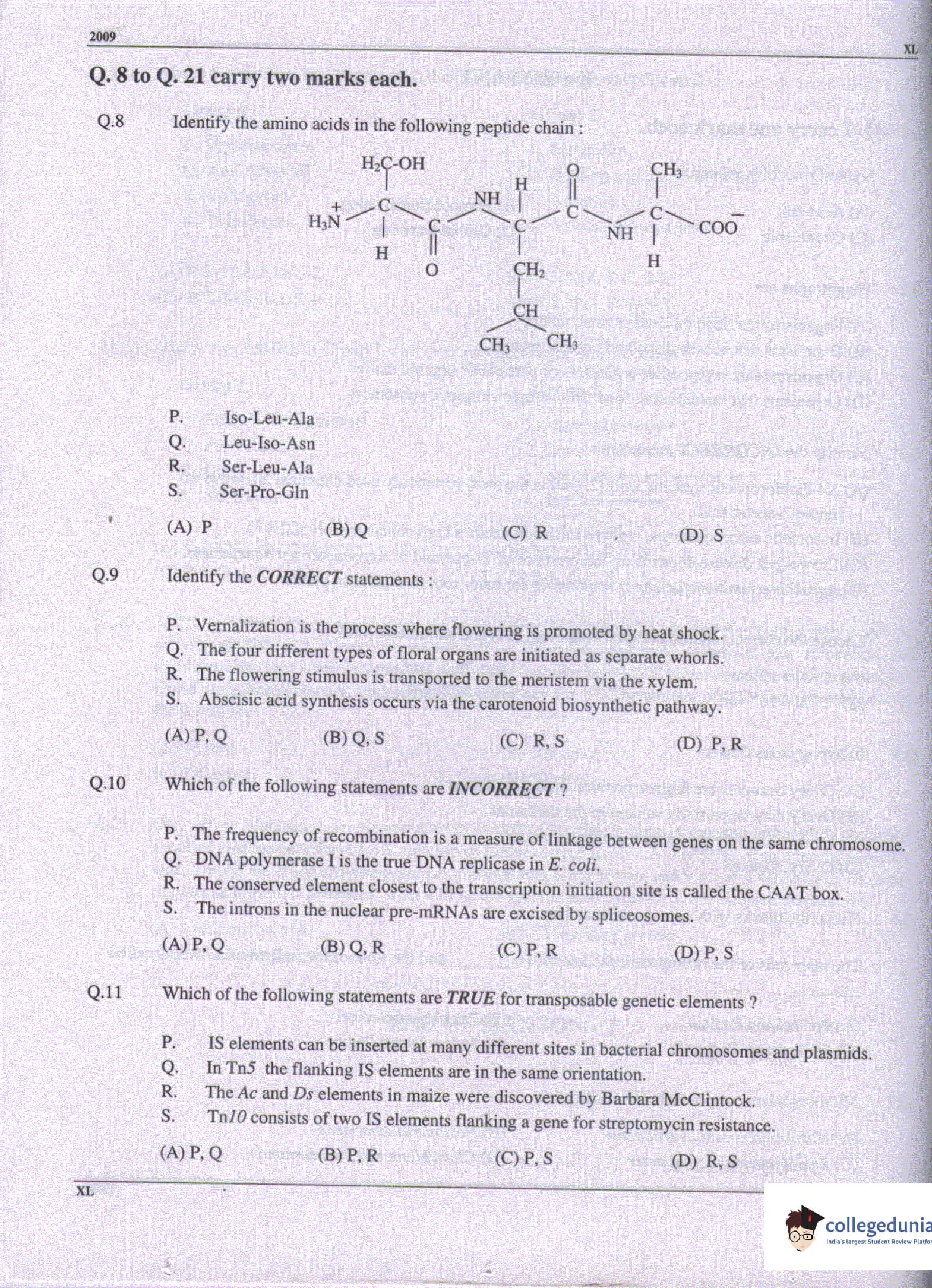 GATE 2009 XL Question Paper with Answer Key PDFs - February 8 (Forenoon Session)