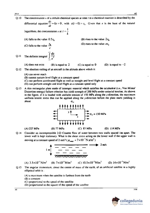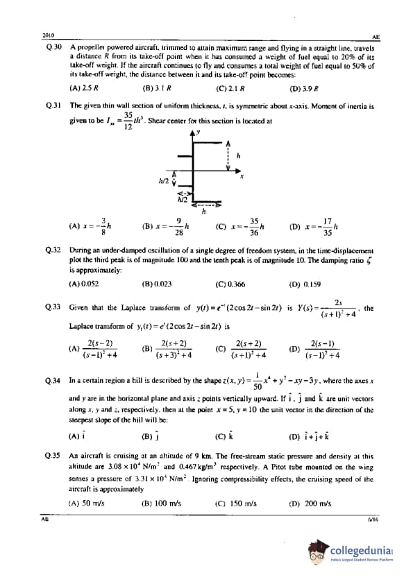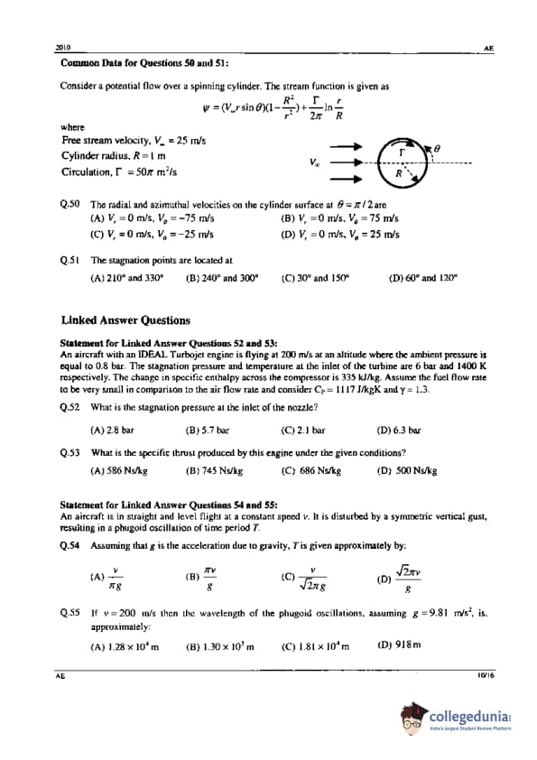 GATE 2010 Aerospace Engineering (AE) Question Papers and Answer Key PDFs (Offline) (February 14 – Forenoon Session)