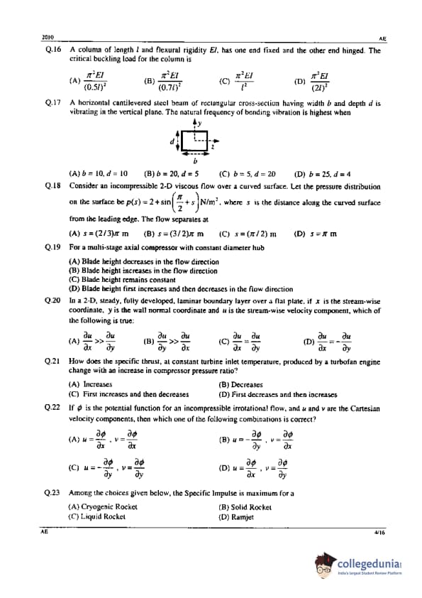 | GATE 2010 AE Question Paper | GATE 2010 AE Answer Key |