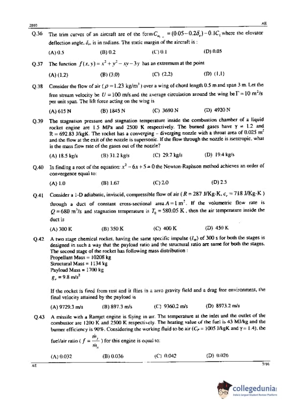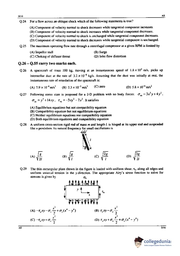 GATE 2010 Aerospace Engineering (AE) Question Paper Analysis