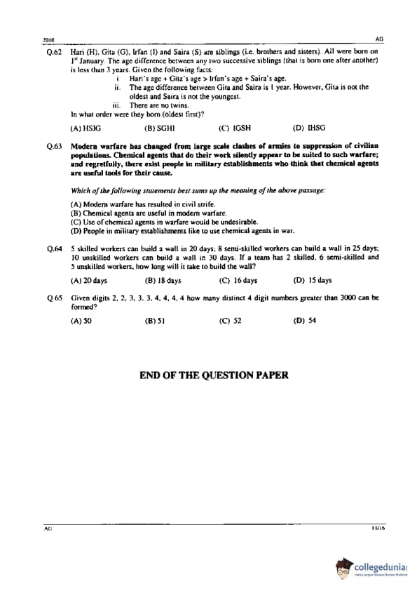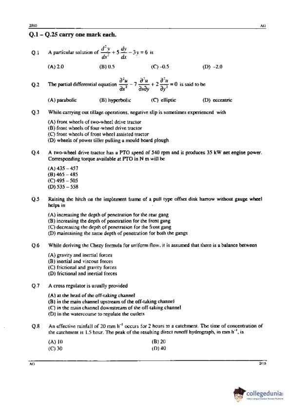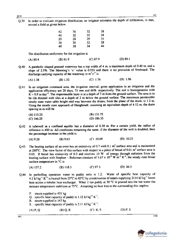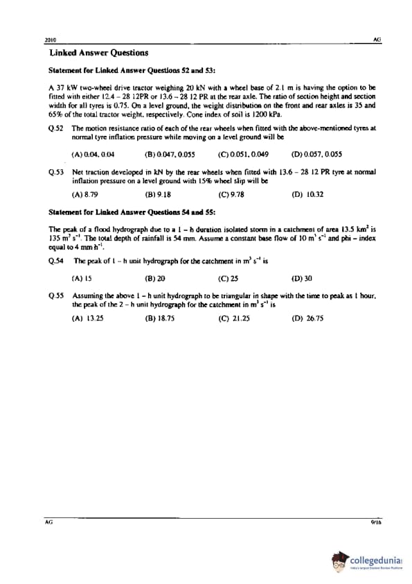 GATE 2010 AG Paper Analysis
