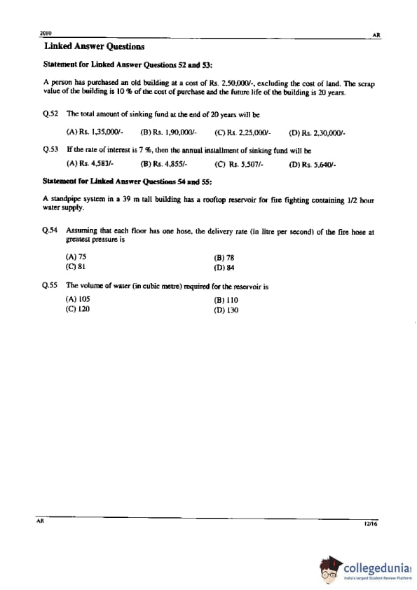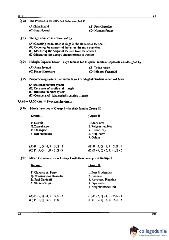 | GATE 2010 AR Question Paper | GATE 2010 AR Answer Key |