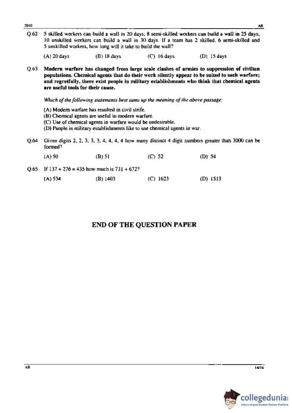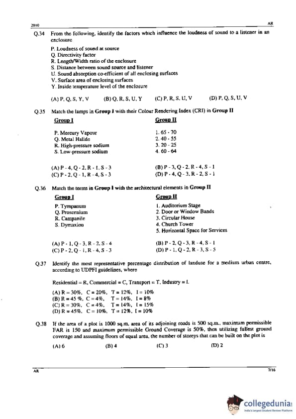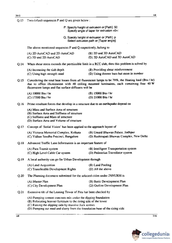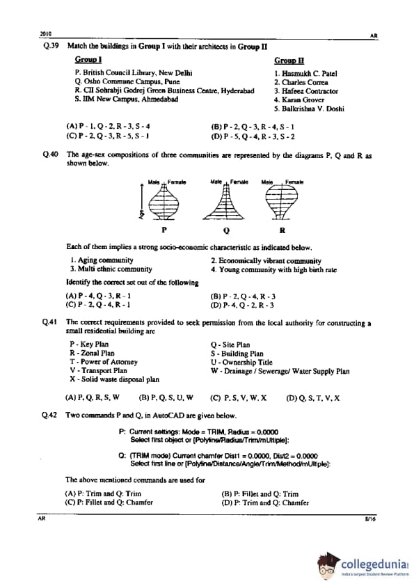 GATE 2010 AR Question Paper with Answer Key PDFs - February 14, 2010 (Forenoon Session)