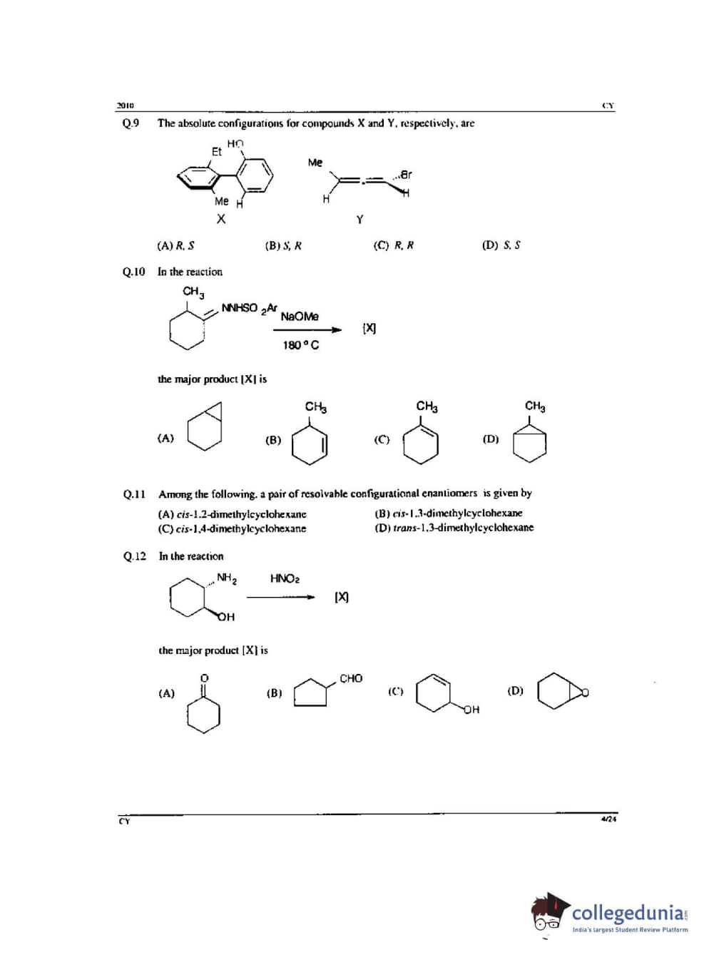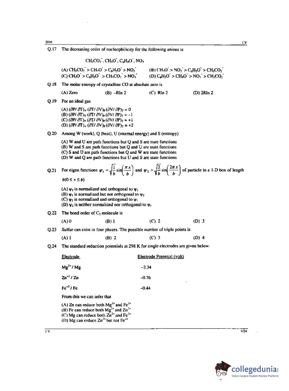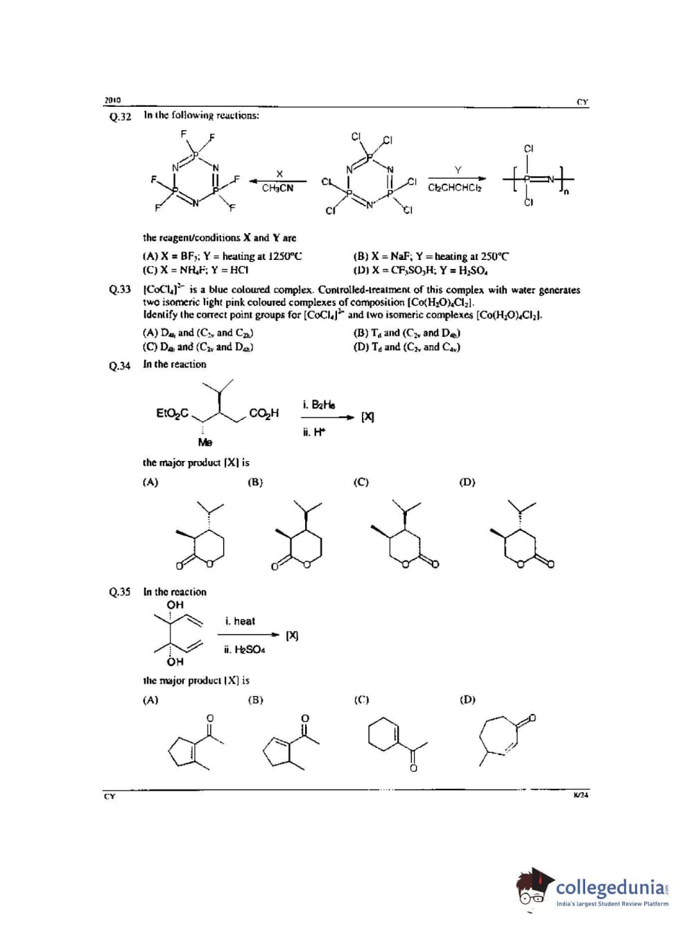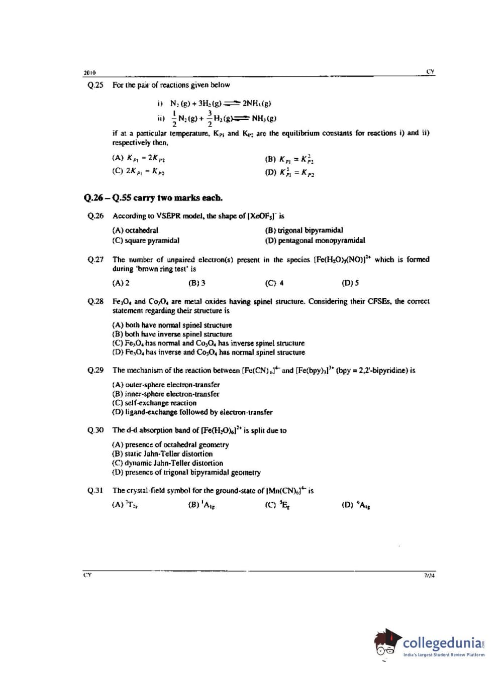 GATE 2010 Chemistry (CY) - Offline Question Paper with Answer Key PDF -Forenoon Session