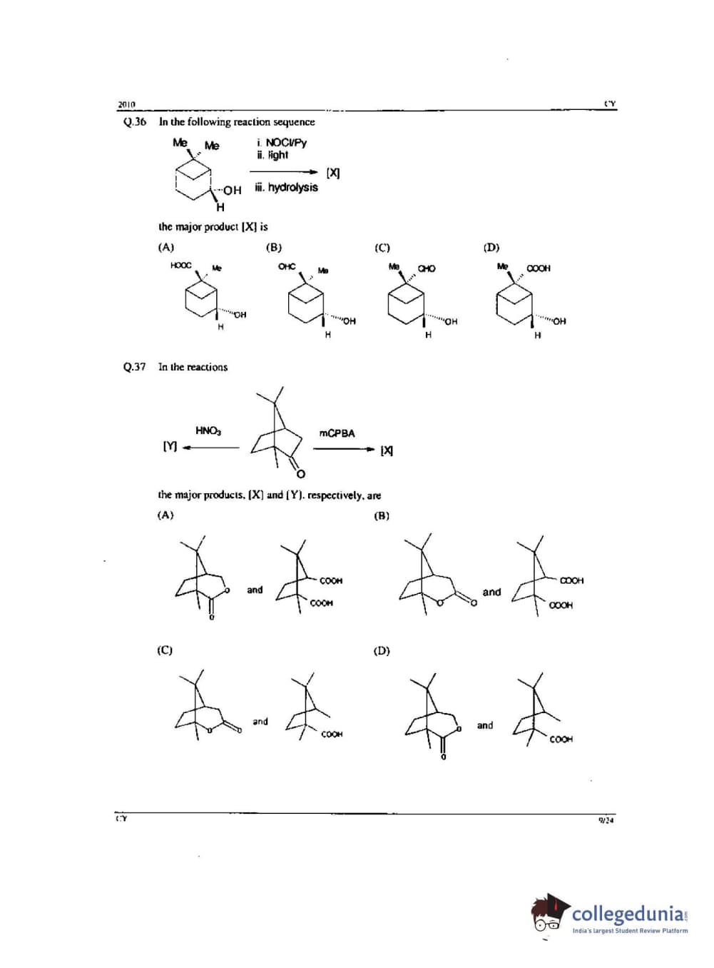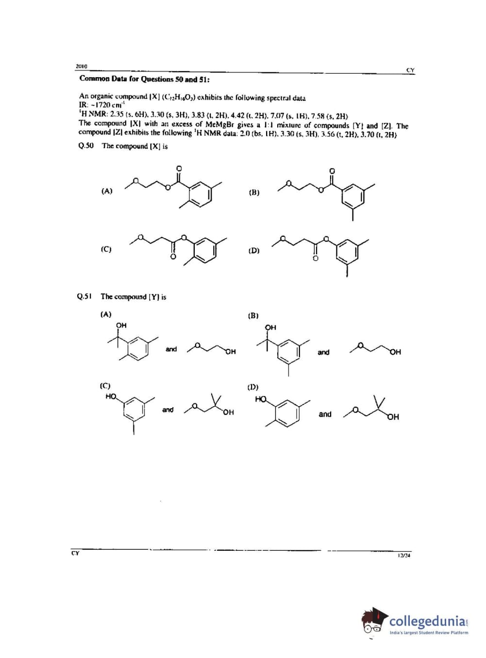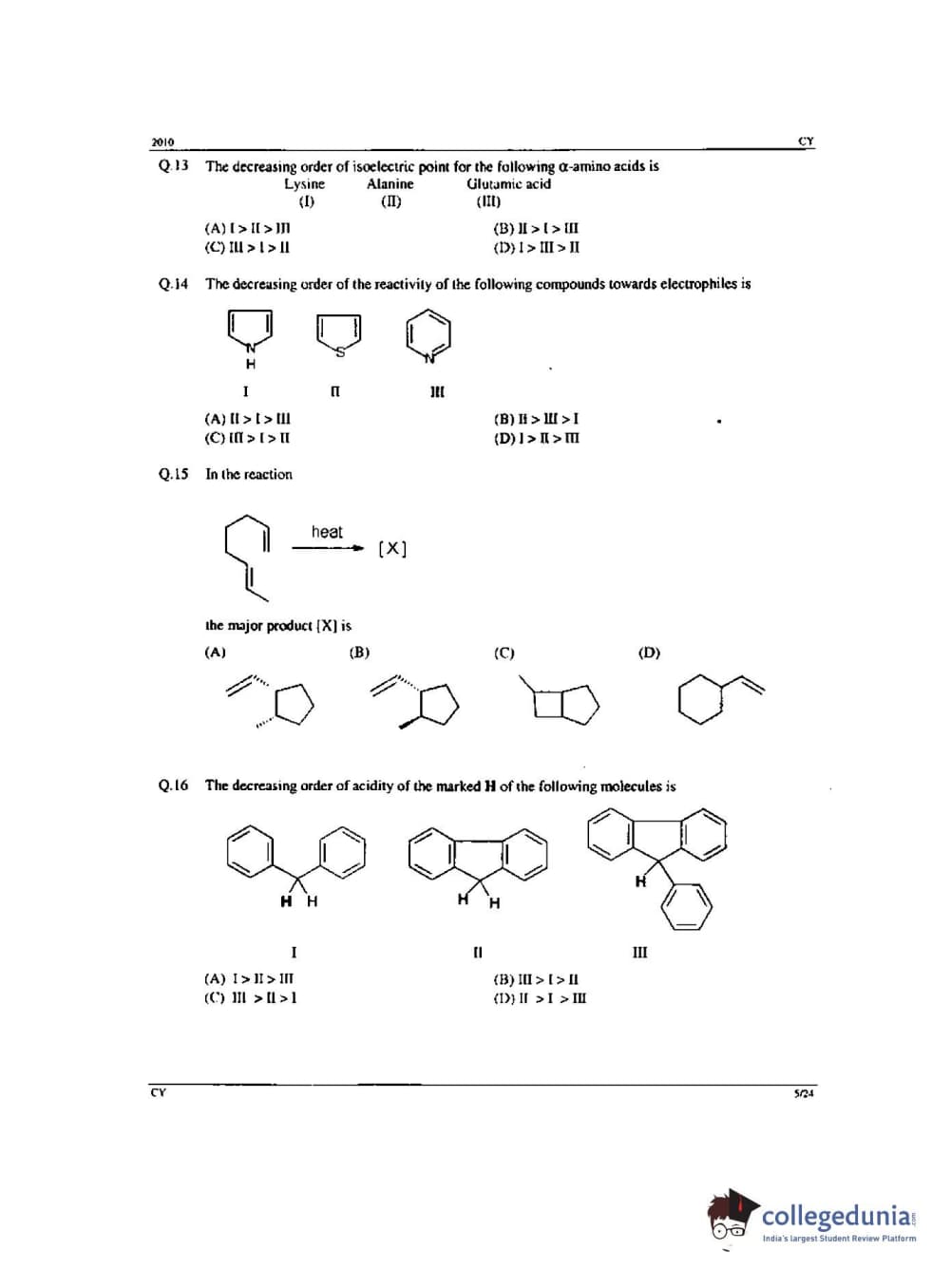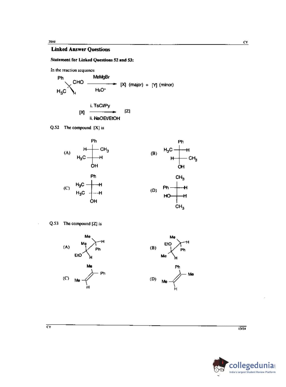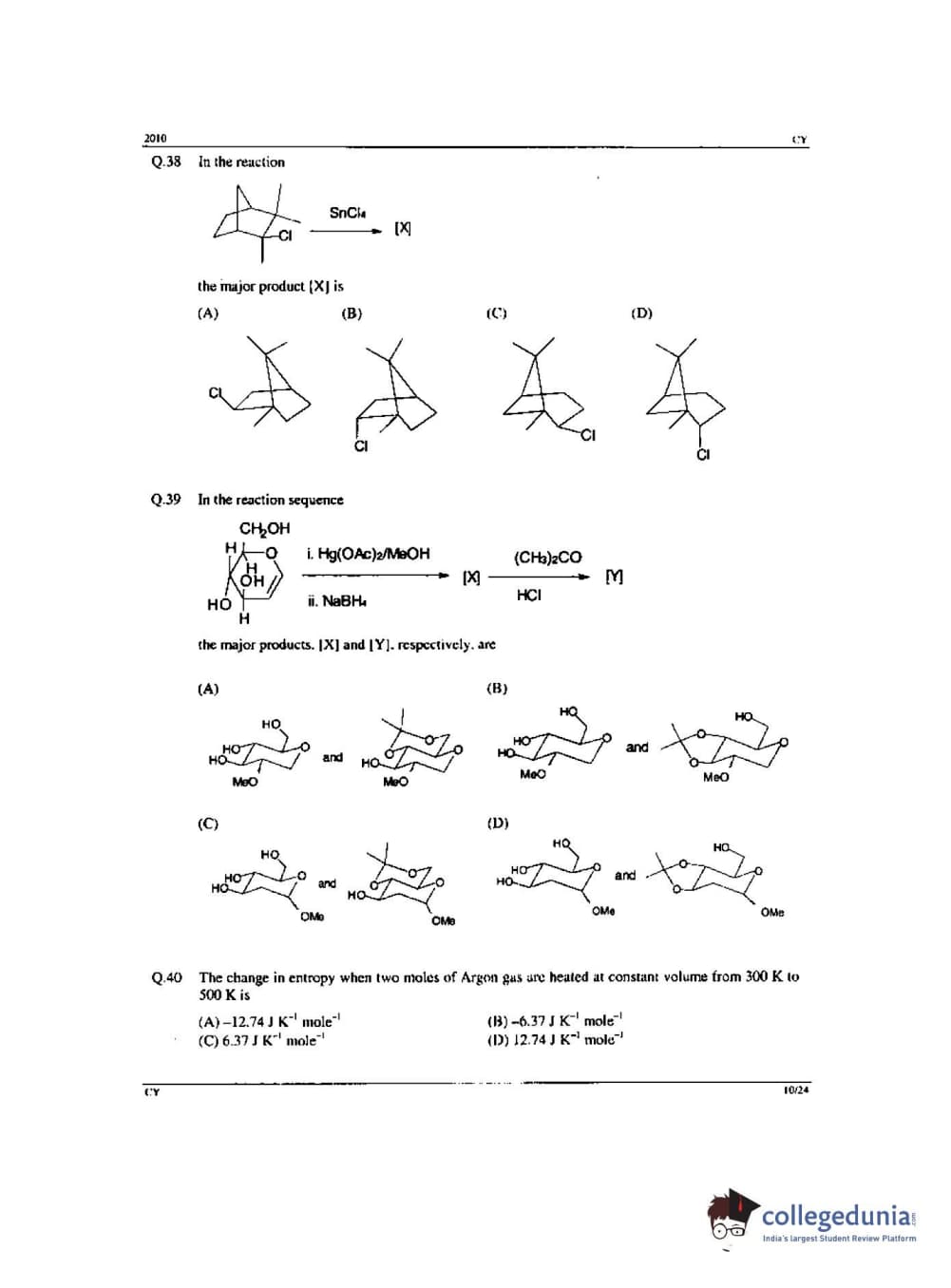 GATE 2010 Chemistry (CY) - Offline Question Paper with Answer Key PDF -Forenoon Session