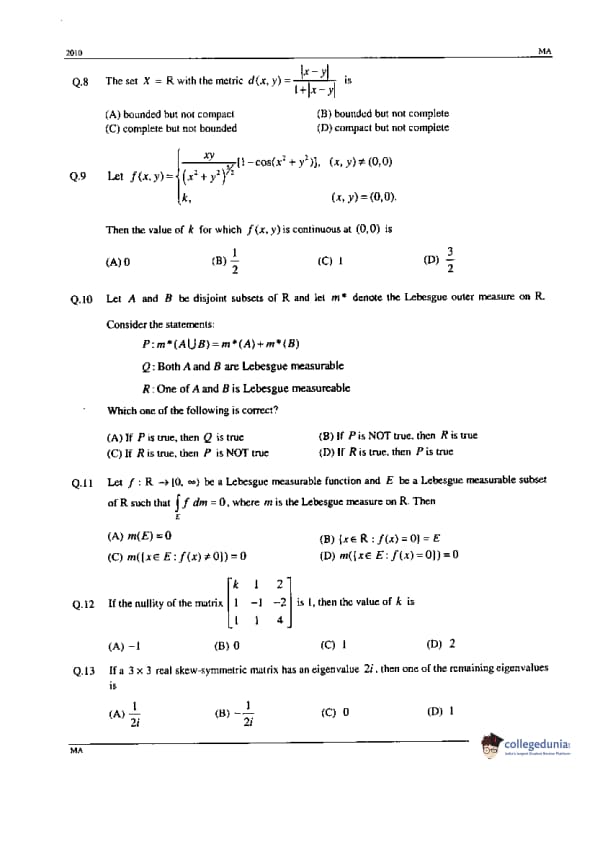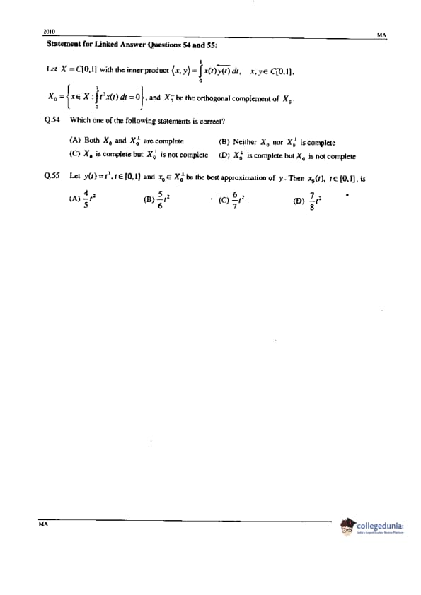 GATE 2010 Mathematics (MA) Question Paper with Answer Key Pdfs Offline (February 14- Afternoon Session)