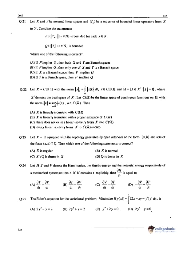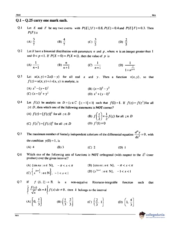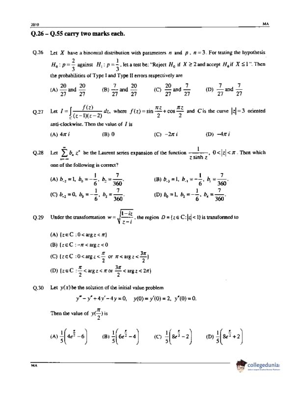 GATE 2010 Mathematics (MA) Paper Analysis
