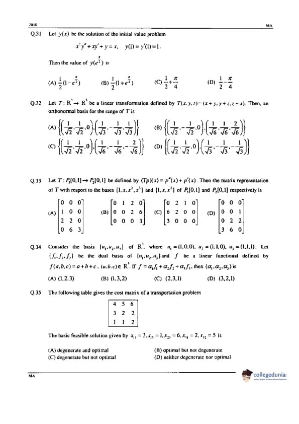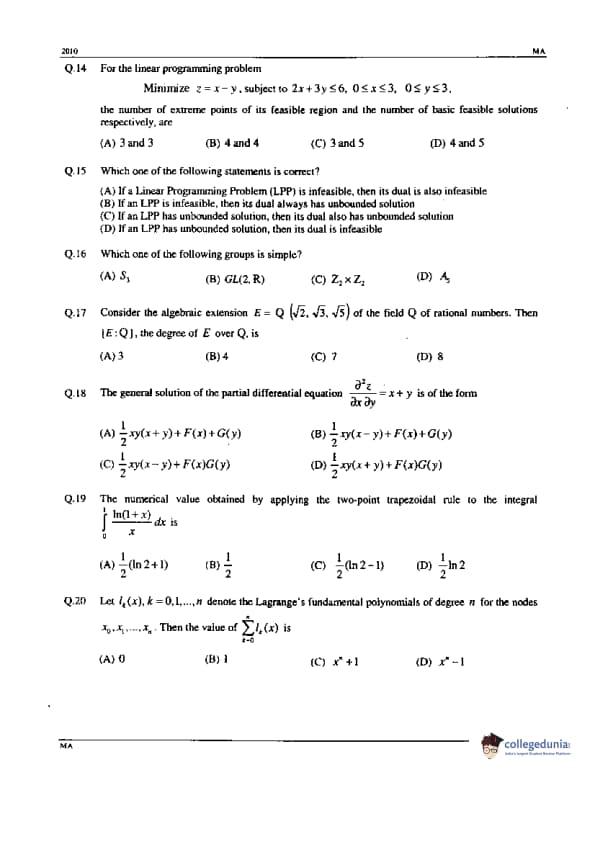 | GATE 2010 Mathematics (MA) Question Paper | GATE 2010 Mathematics (MA) Answer Key |