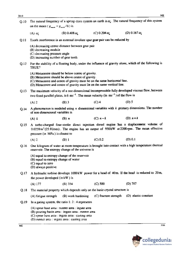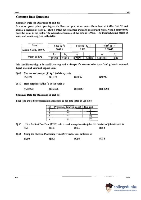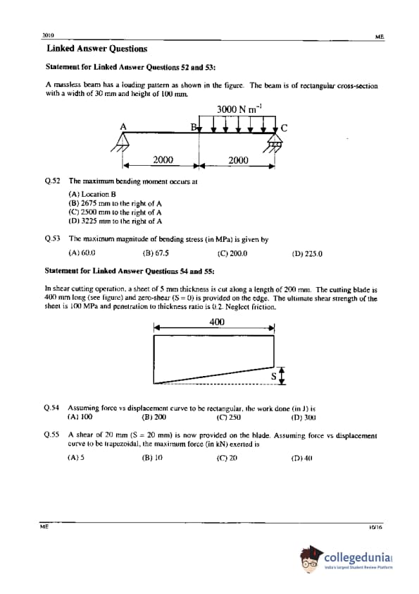 GATE 2010 Mechanical Engineering (ME) Paper Analysis