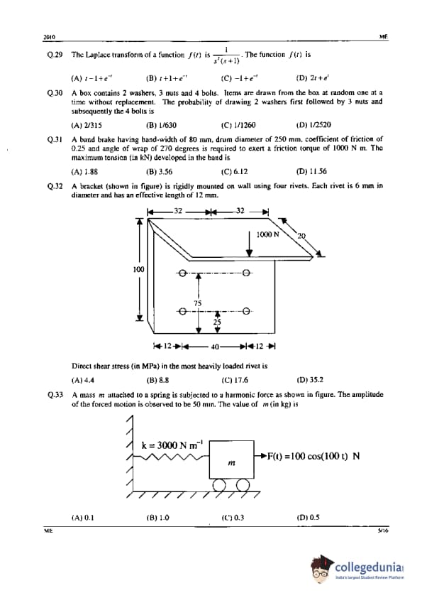 | GATE 2010 Mechanical Engineering (ME) Question Paper | GATE 2010 Mechanical Engineering (ME) Answer Key |