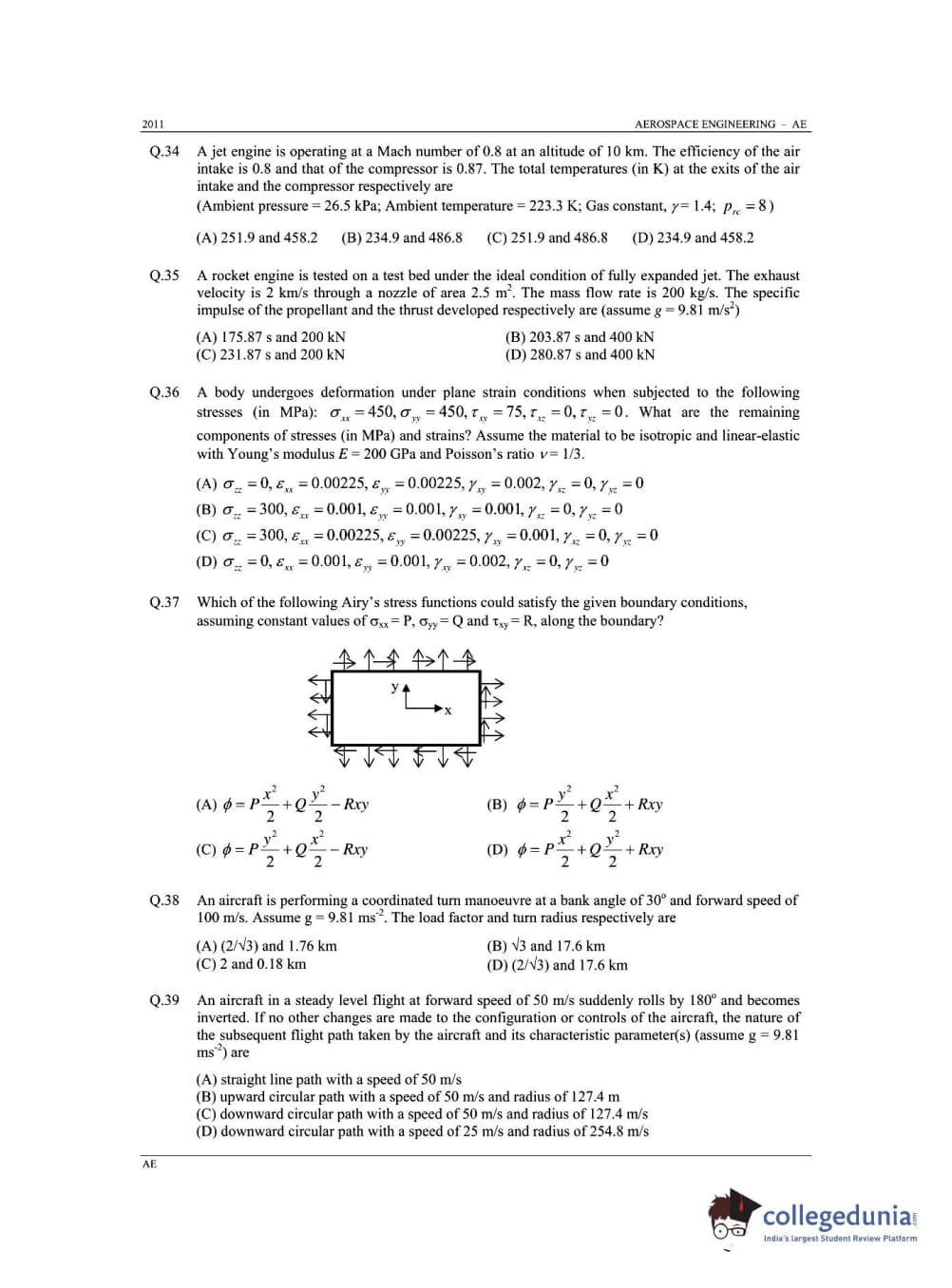 GATE 2011 Aerospace Engineering (AE) Question Papers with Answer Key PDFs (January 30-Afternoon Session)