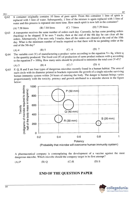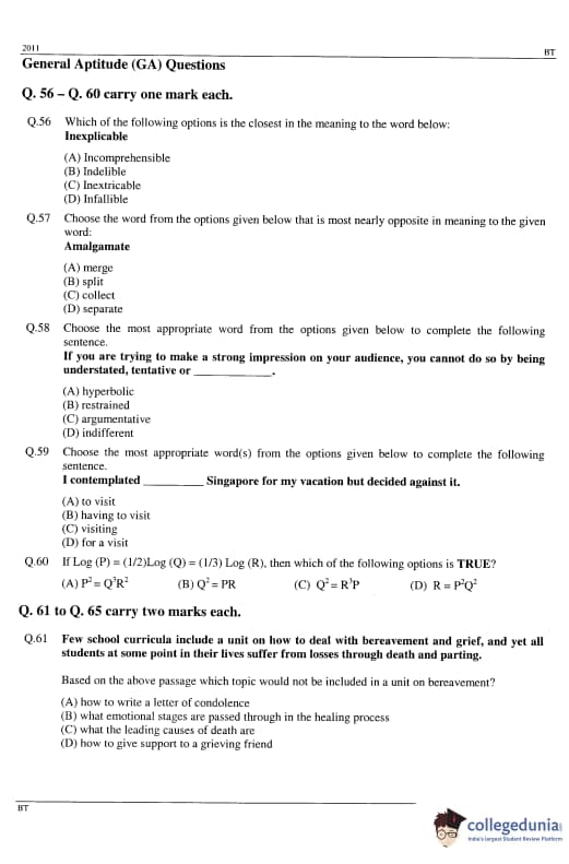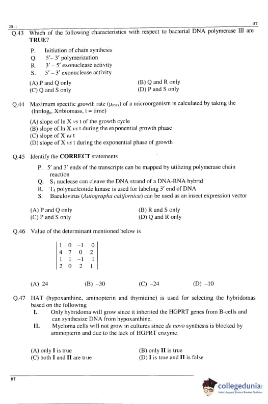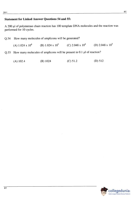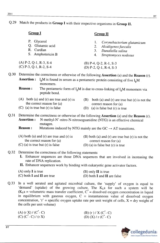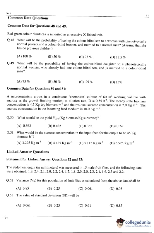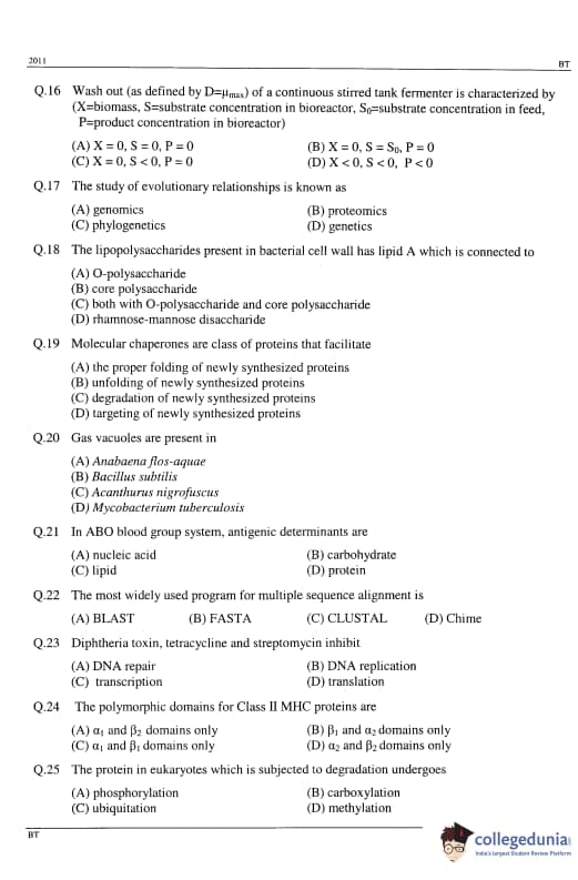 GATE 2011 Biotechnology (BT) Detailed Paper Analysis