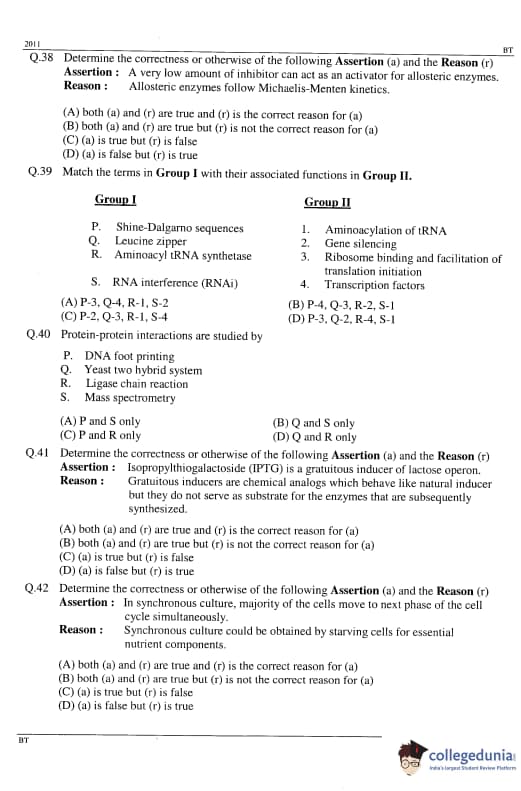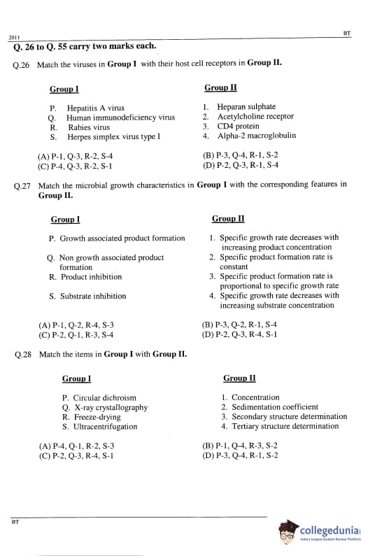 Going through GATE previous year question paper will help candidates in understanding the exam pattern and weightage of questions. It will also help candidates in assessing their preparation for GATE Biotechnology (BT) Paper: