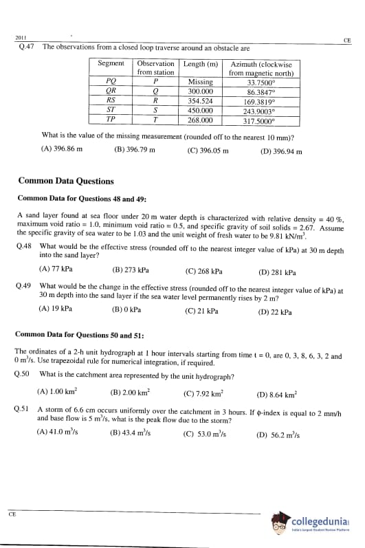 GATE 2011 Civil Engineering (CE) Question Papers with Answer Key PDFs (February 13-Forenoon Session)