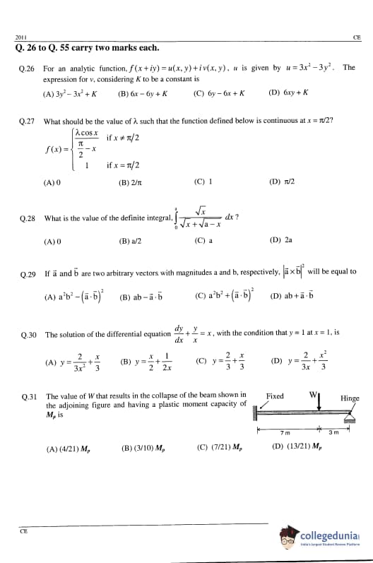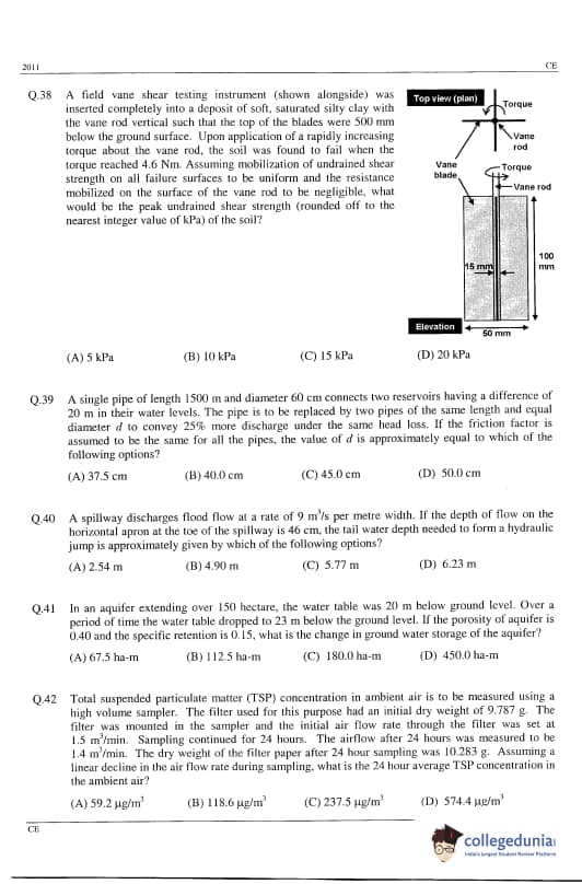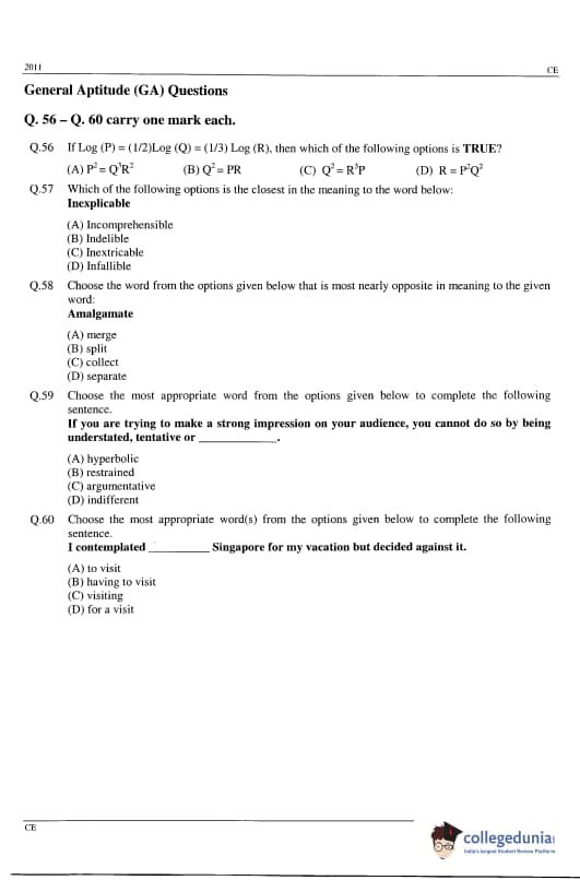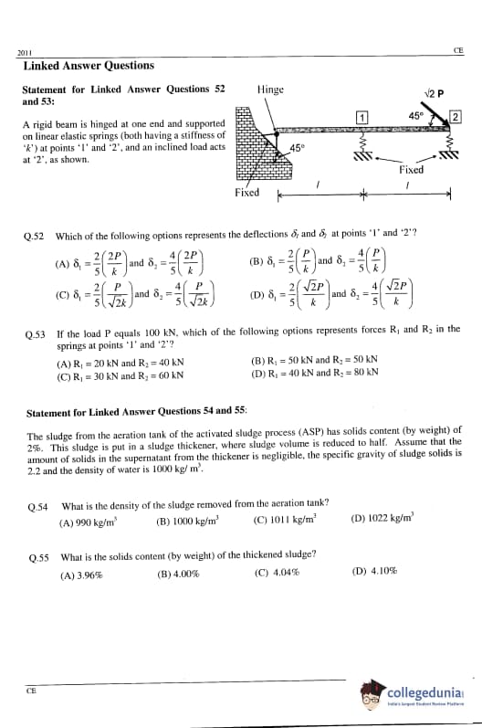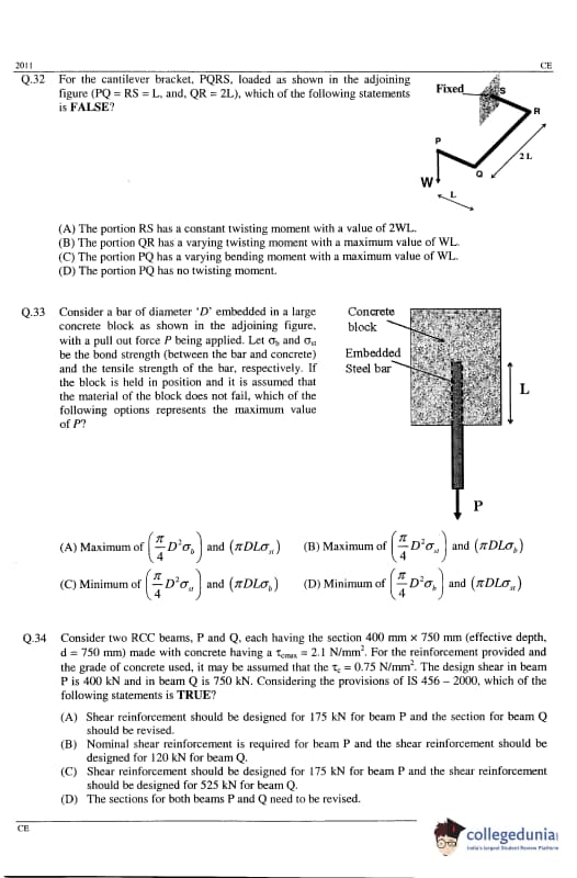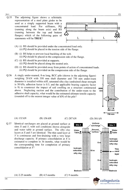 | GATE 2011 Civil Engineering (CE) Question Paper | GATE 2011 Civil Engineering (CE) Answer Key |