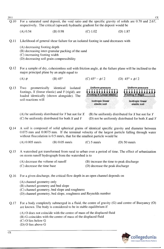 Going through GATE previous year question paper will help candidates in understanding the exam pattern and weightage of questions. It will also help candidates in assessing their preparation for GATE CE Paper:
