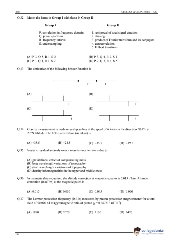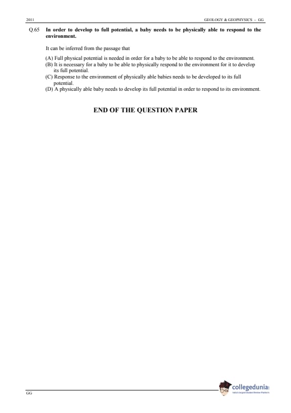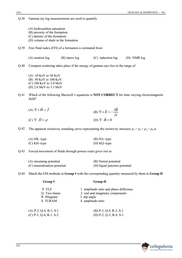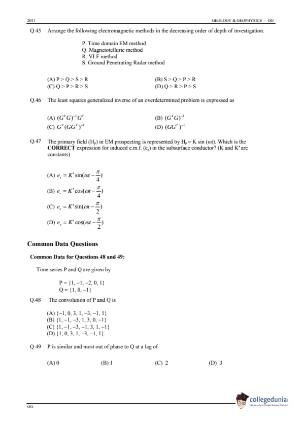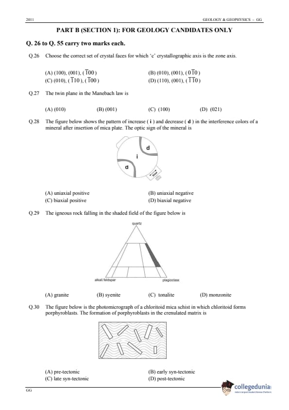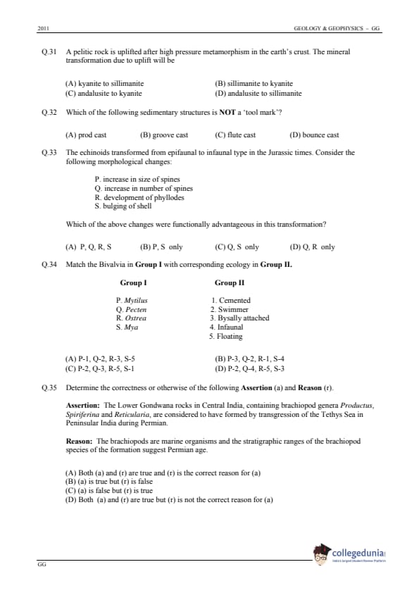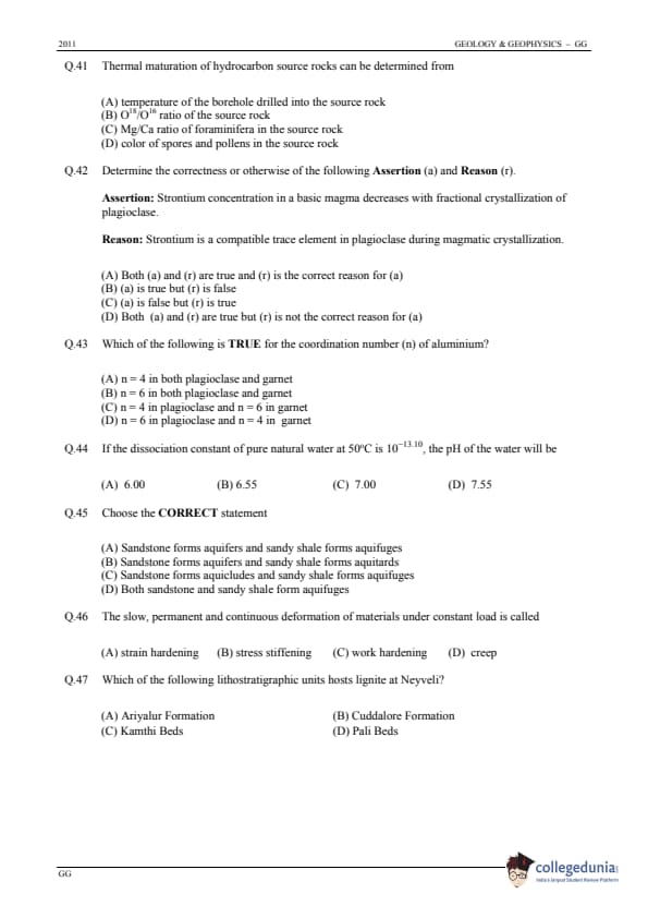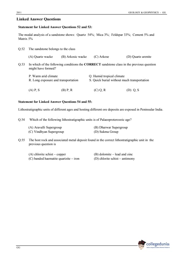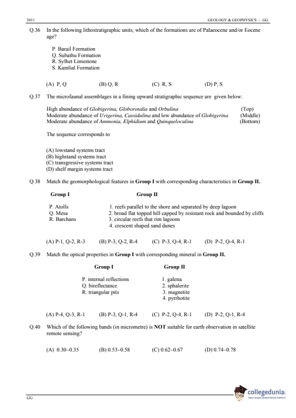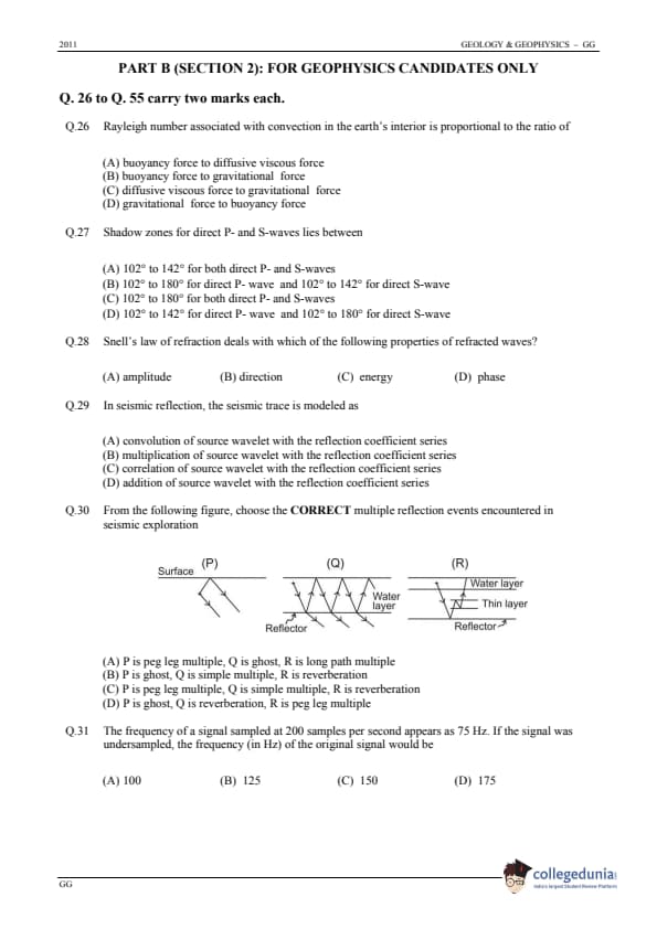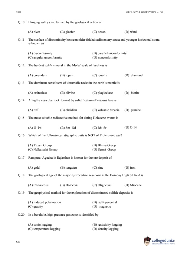 | GATE 2011 Geology and Geophysics (GG) Question Paper | GATE 2011 Geology and Geophysics (GG) Answer Key |