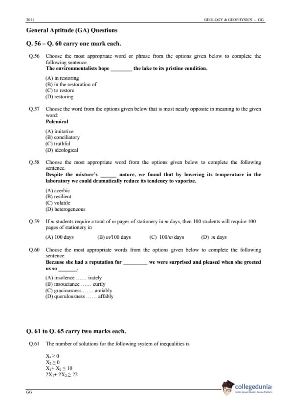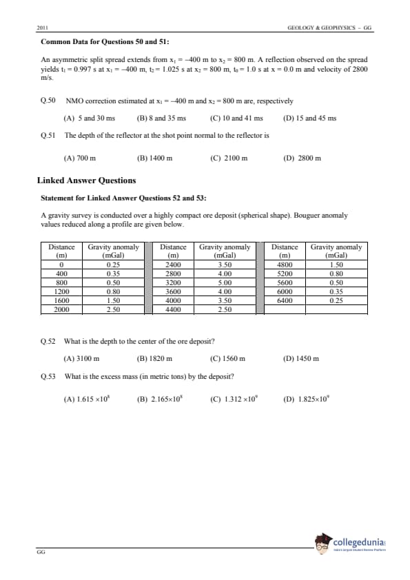 GATE 2011 Geology and Geophysics (GG) Question Paper Analysis