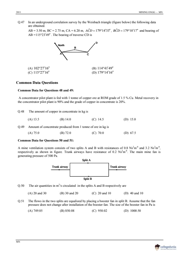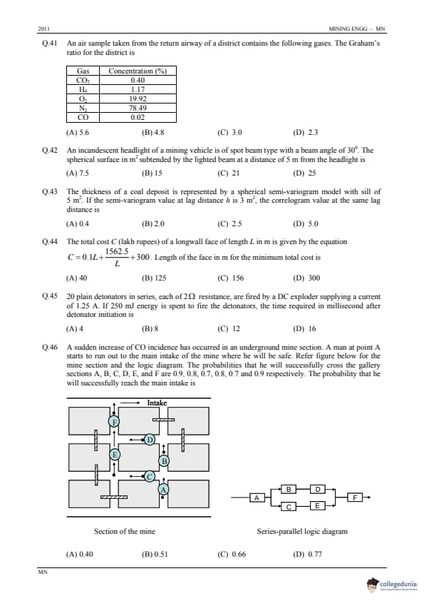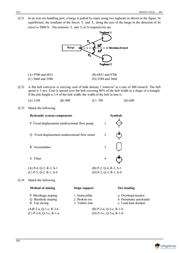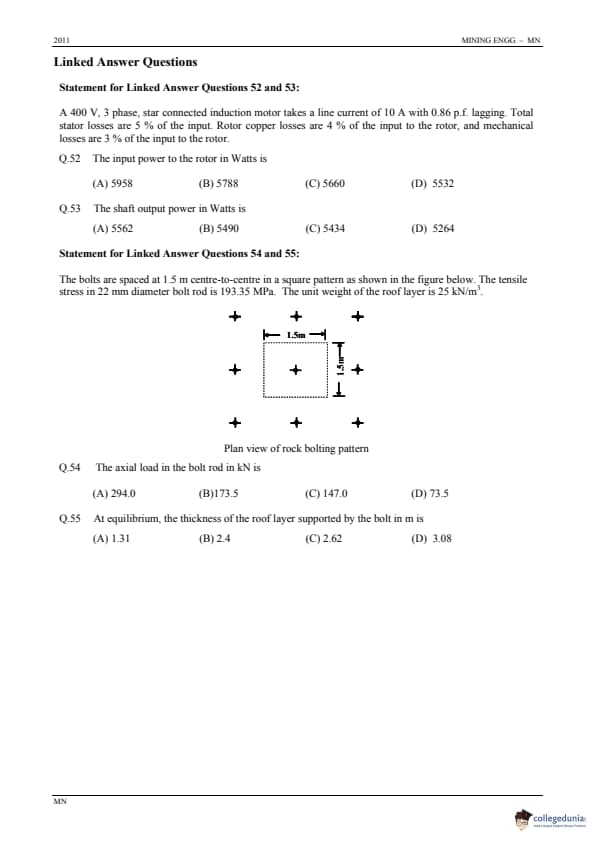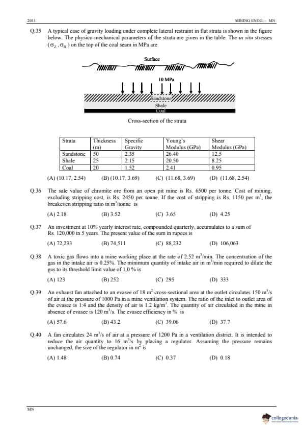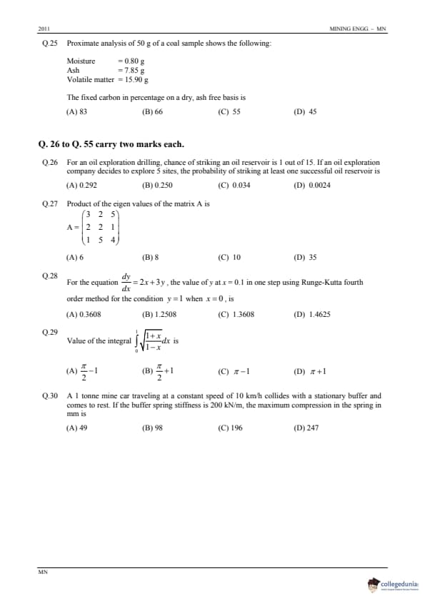 GATE 2011 Mining Engineering (MN) Question Paper with Answer Key PDFs (January 30 - Afternoon Session)