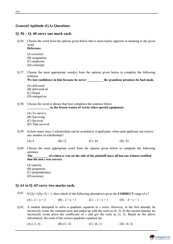 | GATE 2011 MN Question Paper | GATE 2011 MN Answer Key |
