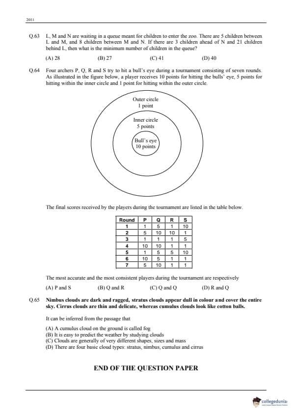 GATE 2011 MN consists of 65 questions with a division of 1 mark question and 2 marks question over the paper. The below mentioned table is a brief description of the divisions of questions in GATE MN 2011.