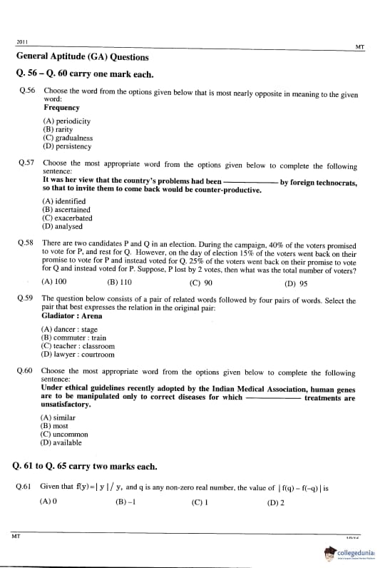 GATE 2011 MT Question Paper Analysis