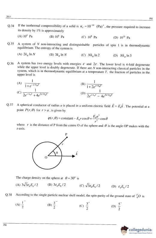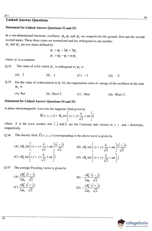GATE 2011 Physics (PH) Question Paper with Answer Key PDFs (February 13 - Forenoon Session)