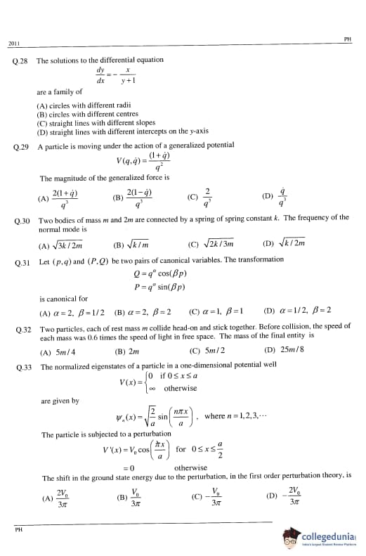 | GATE 2011 PH Question Paper | GATE 2011 PH Answer Key |