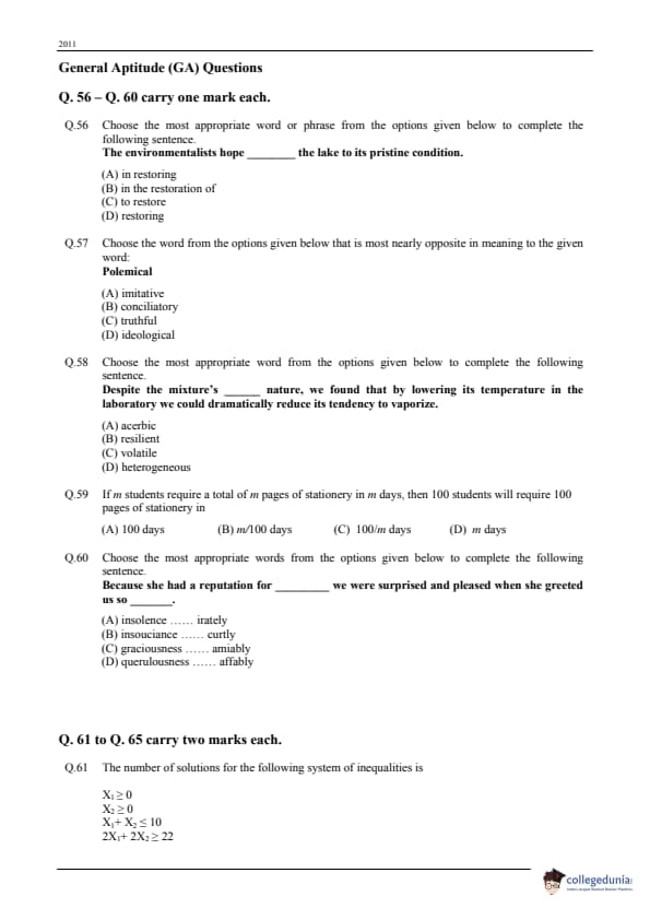 GATE 2011 TF Question Paper Analysis