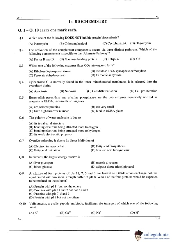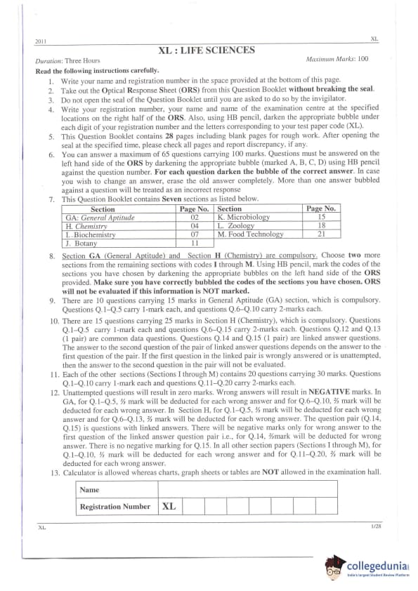 GATE 2011 Life Sciences (XL) Question Paper Analysis