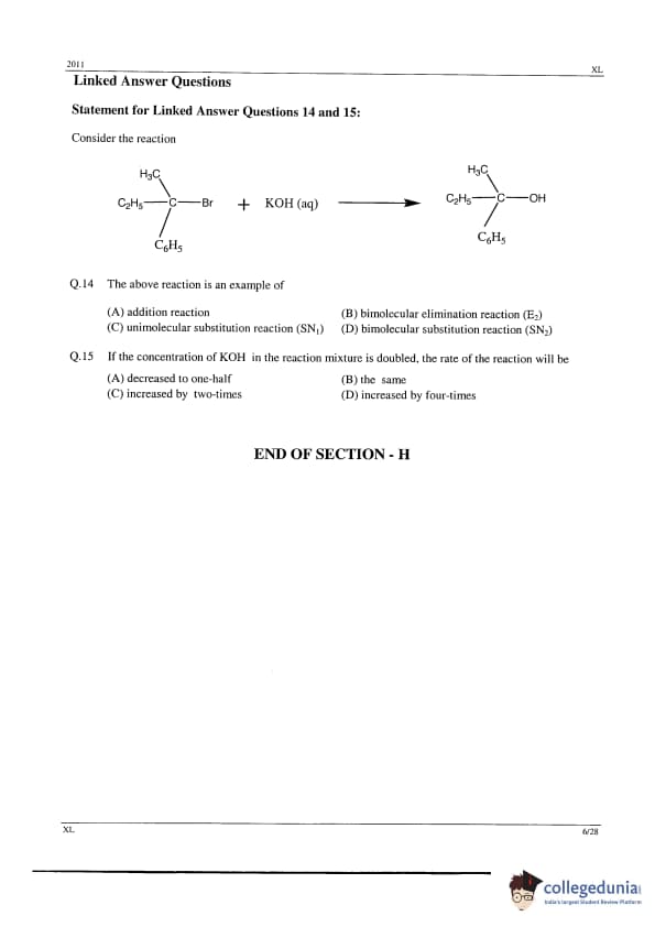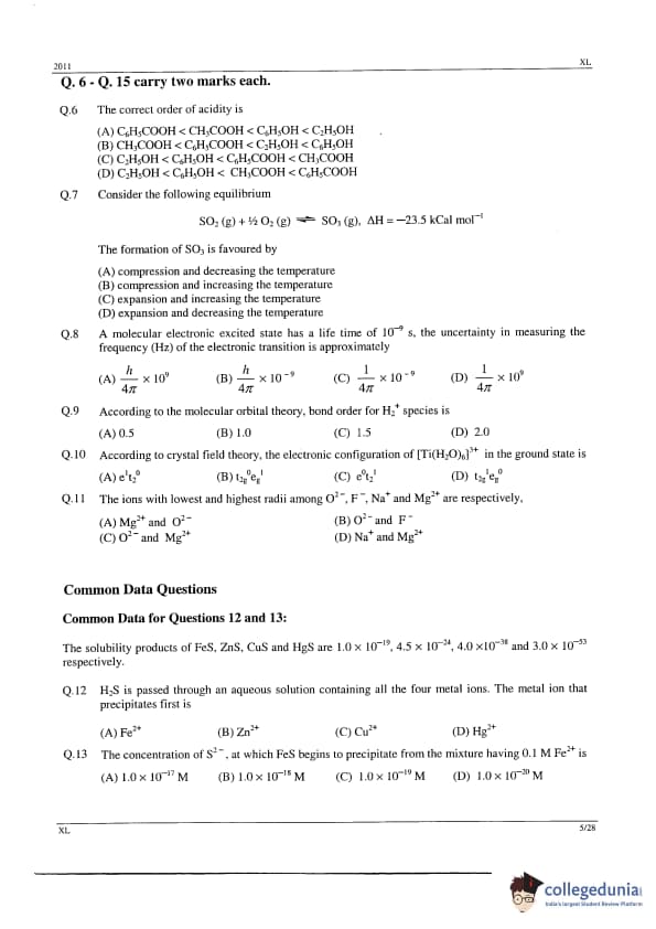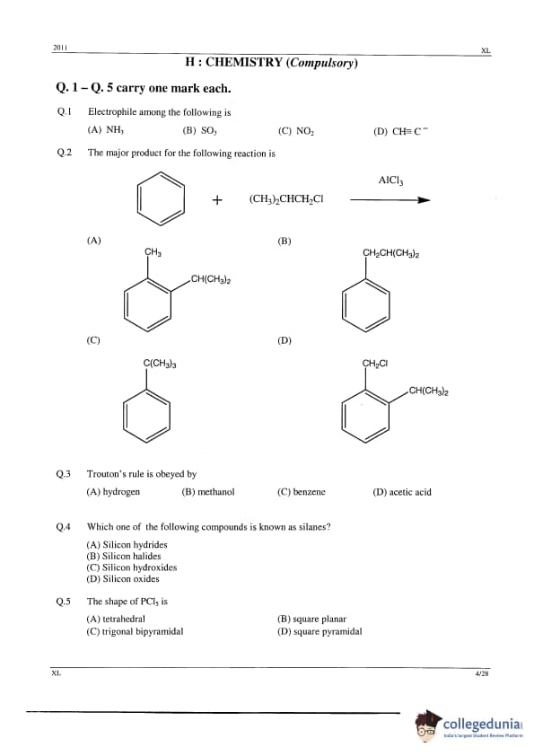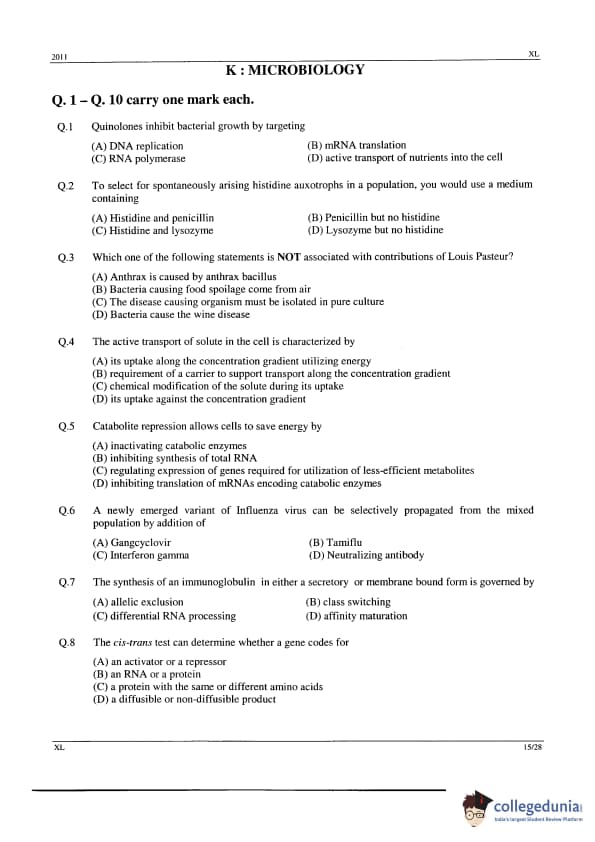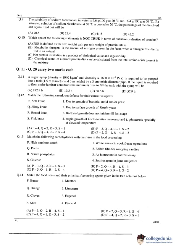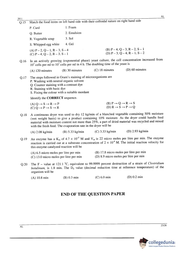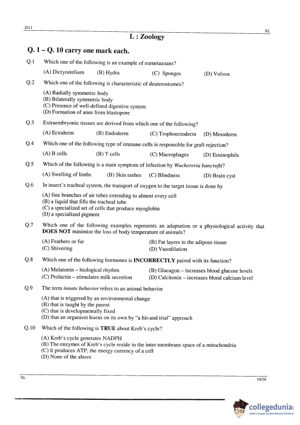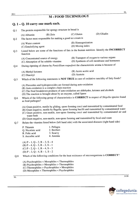 | GATE 2011 XL Question Paper | GATE 2011 XL Answer Key |