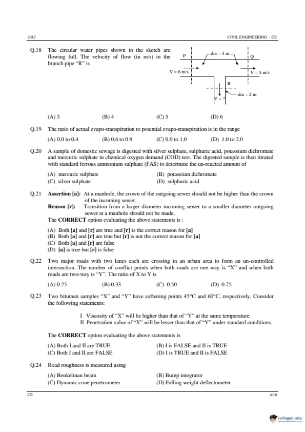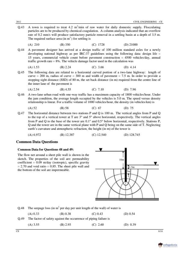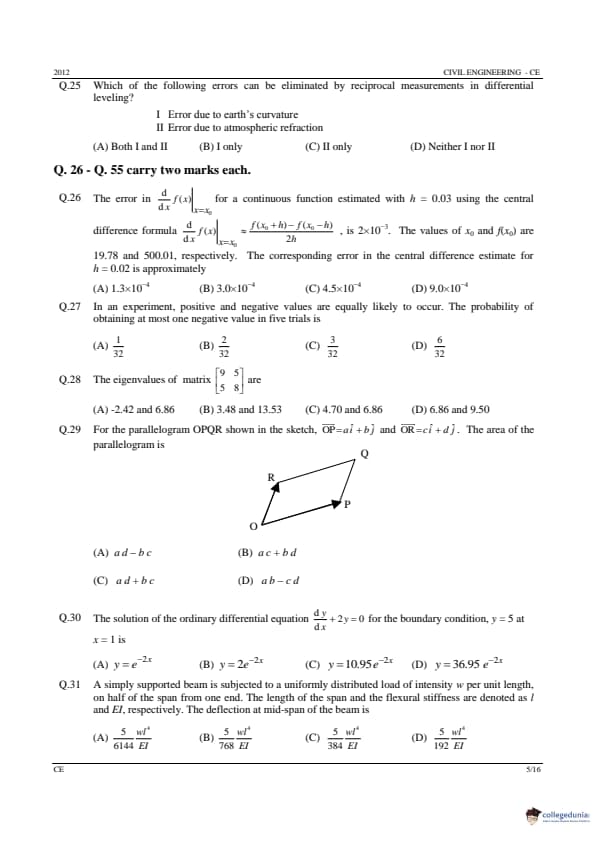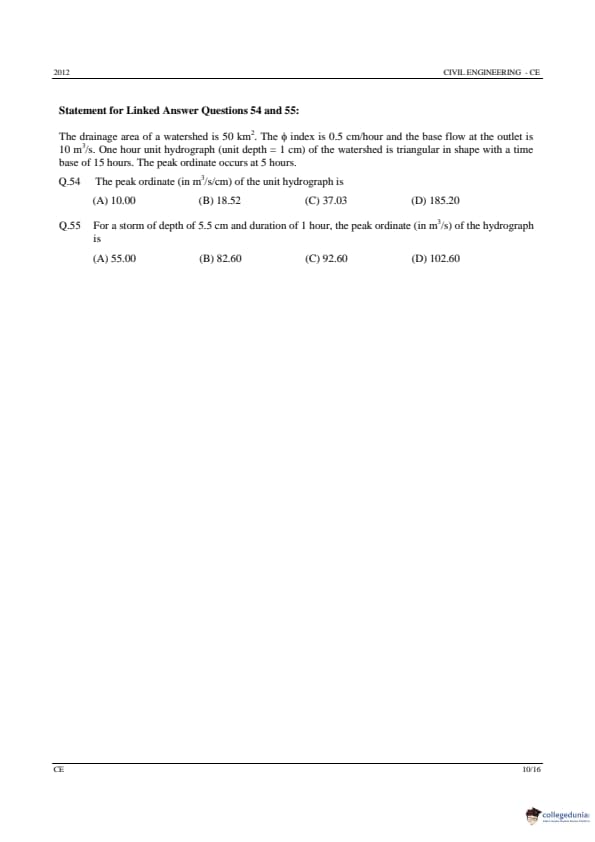 GATE 2012 Civil Engineering (CE) Question Paper with Answer Key PDFs (Offline) (February 12 – Forenoon Session)