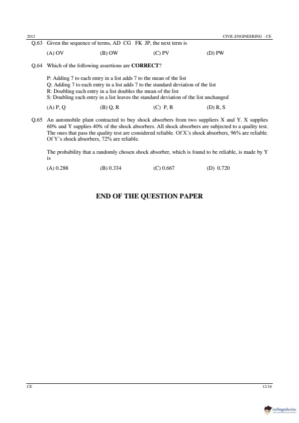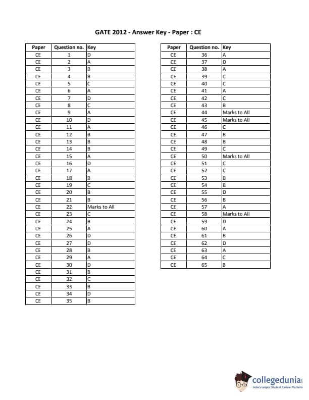 GATE 2012 CE Answer Key Details